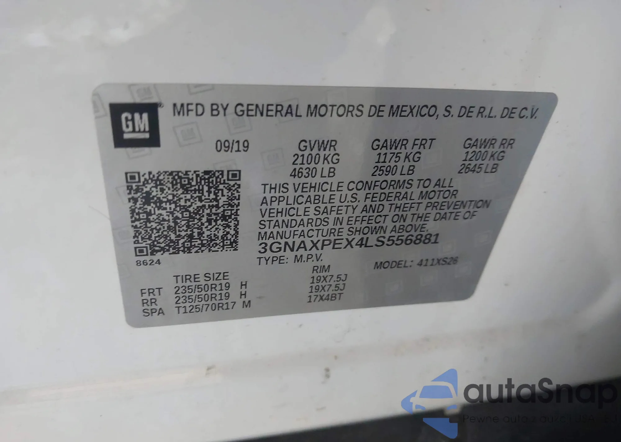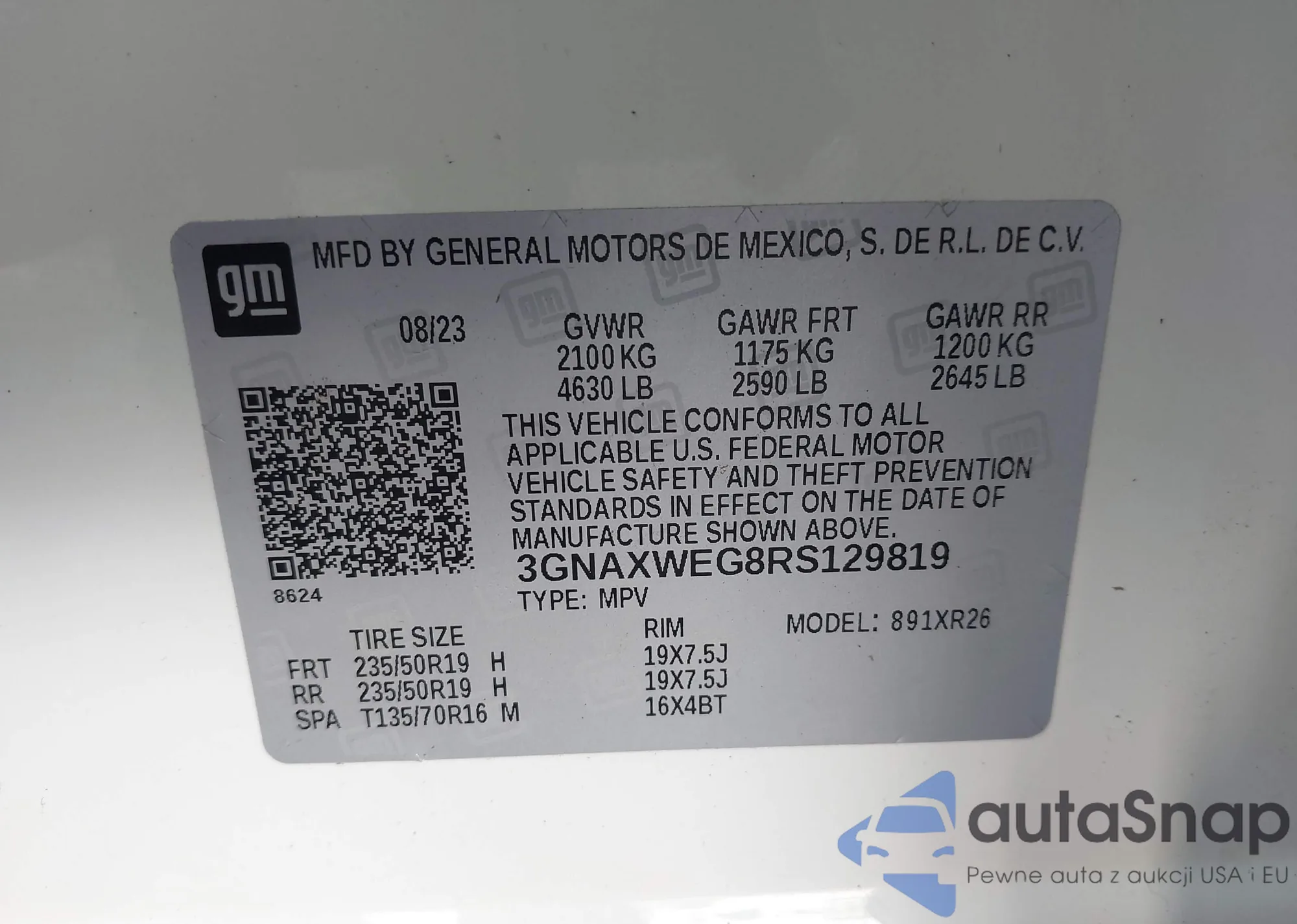 LOT: 43454214 VIN: 3GNAXWEG8RS129819