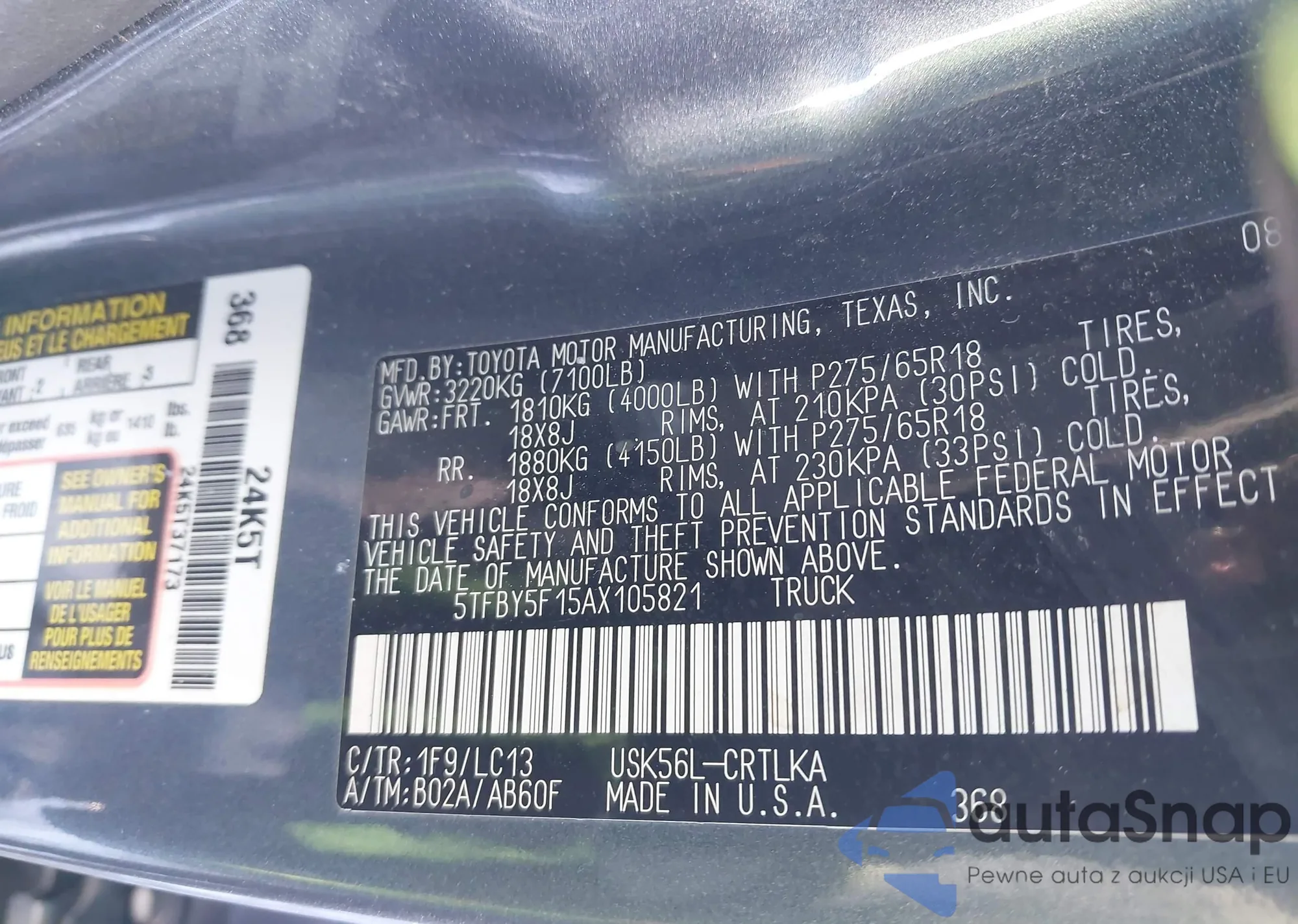 LOT: 43920376 VIN: 5TFBY5F15AX105821