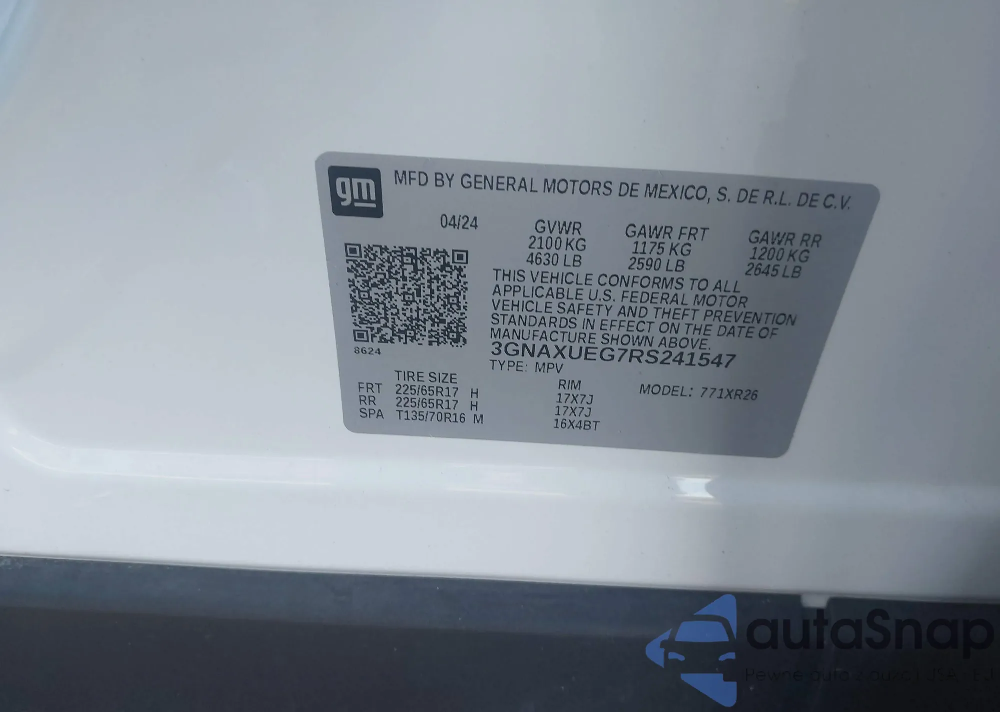 LOT: 43931060 VIN: 3GNAXUEG7RS241547