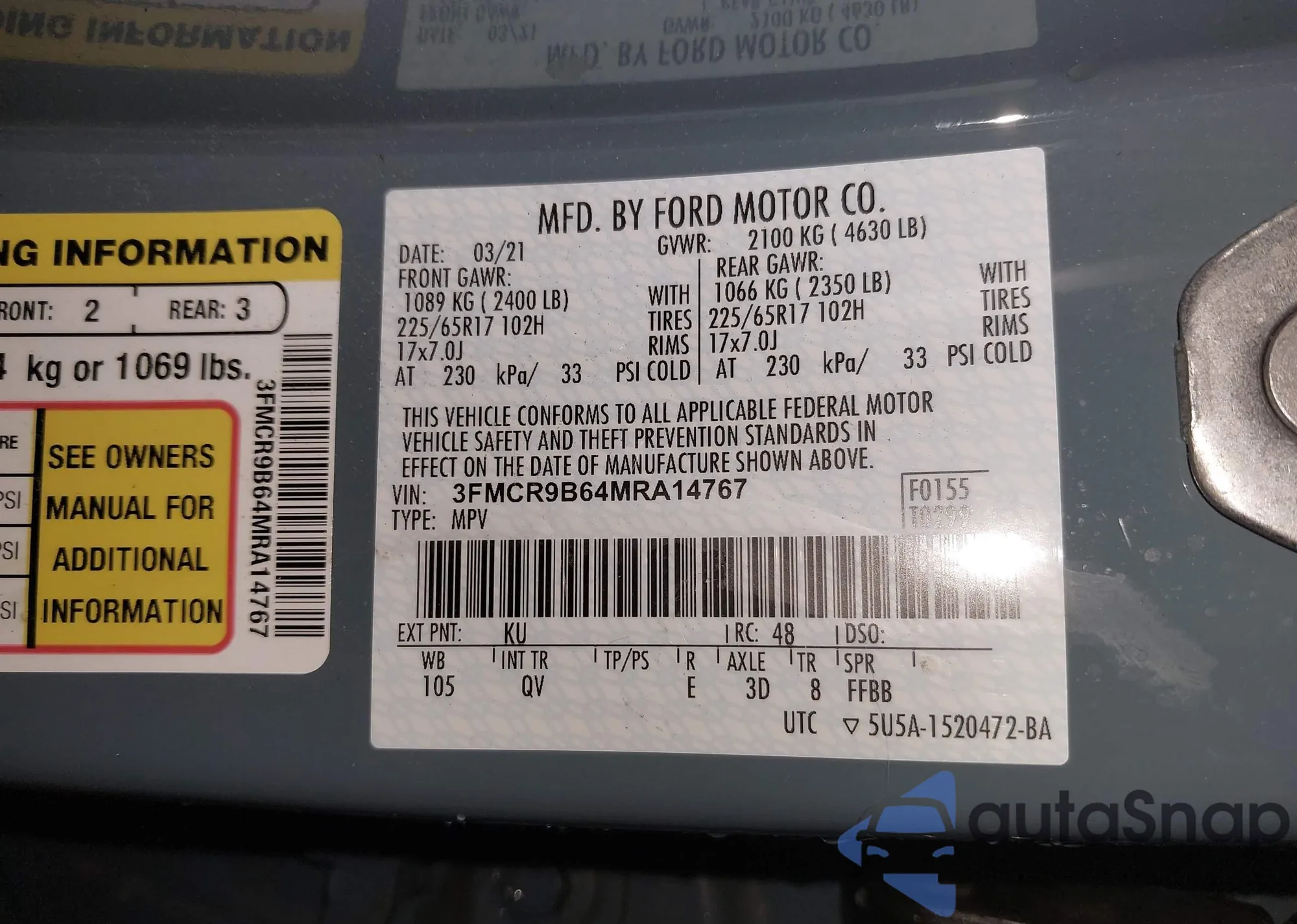 • VIN 5TFBY5F15AX105821