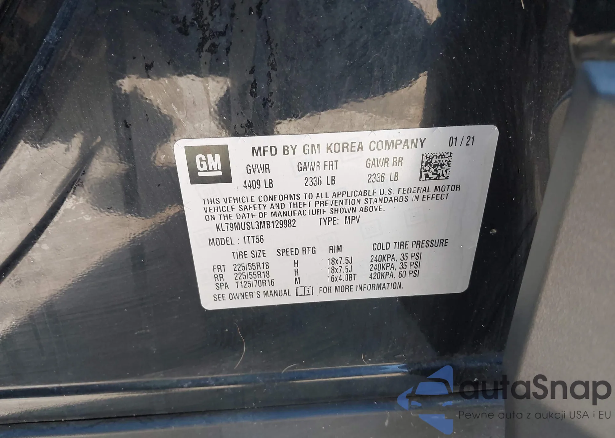 LOT: 43400891 VIN: KL79MUSL3MB129982