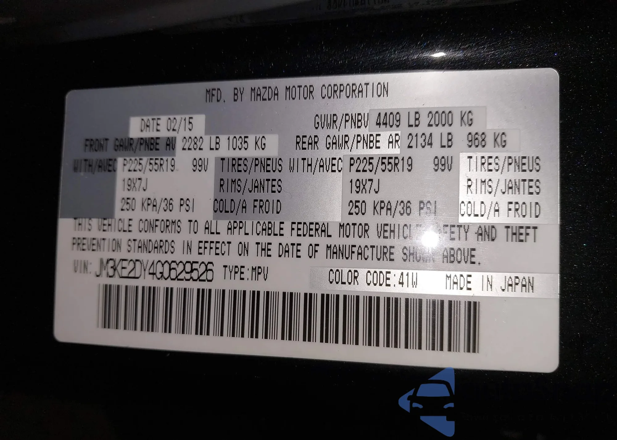 LOT: 43486727 VIN: JM3KE2DY4G0629526