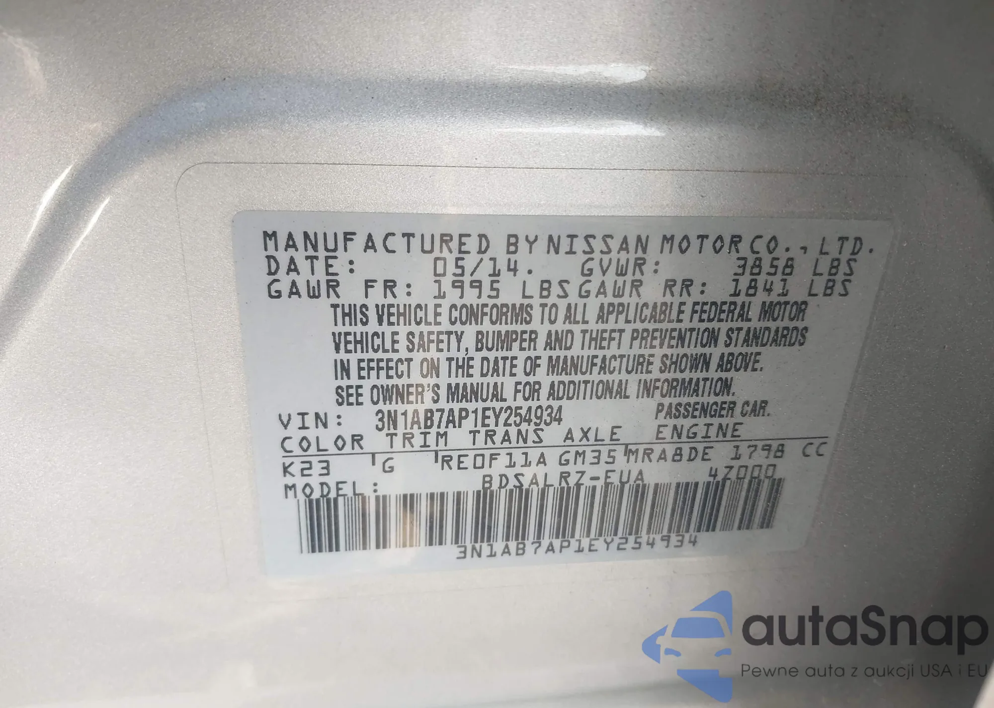 • VIN 3N1AB7AP1EY254934