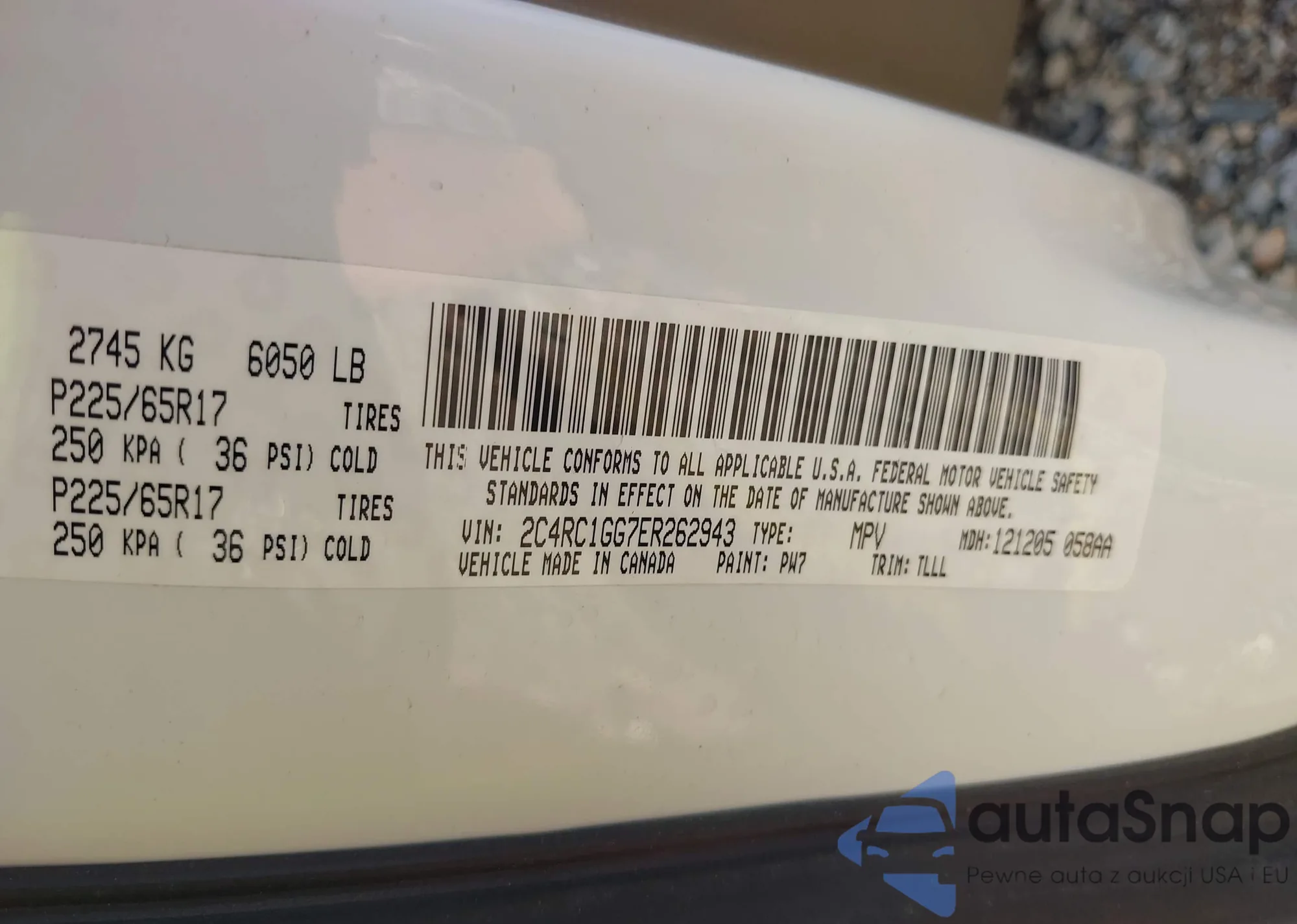 • VIN 2C4RC1GG7ER262943