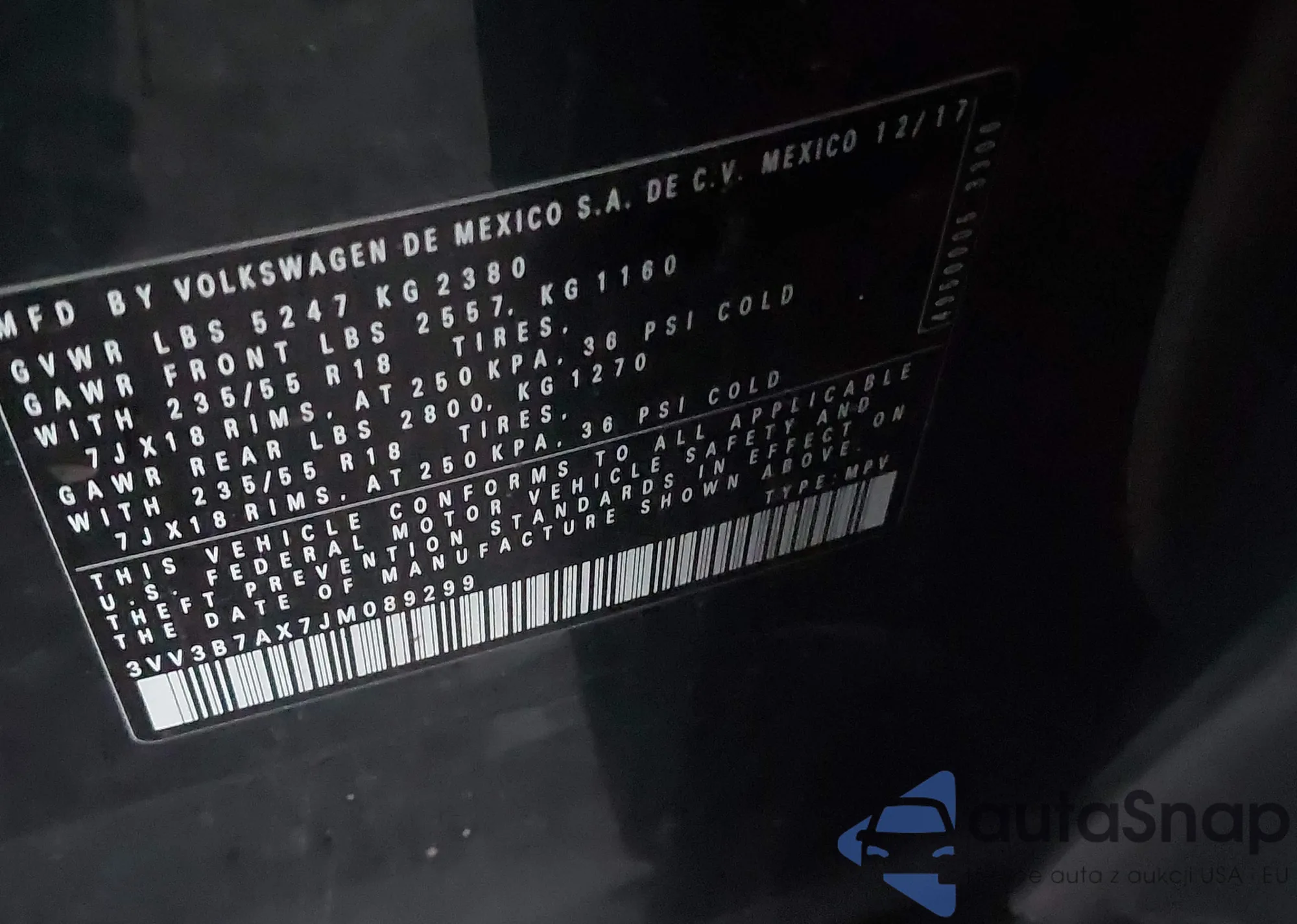 • VIN 3VV3B7AX7JM089299