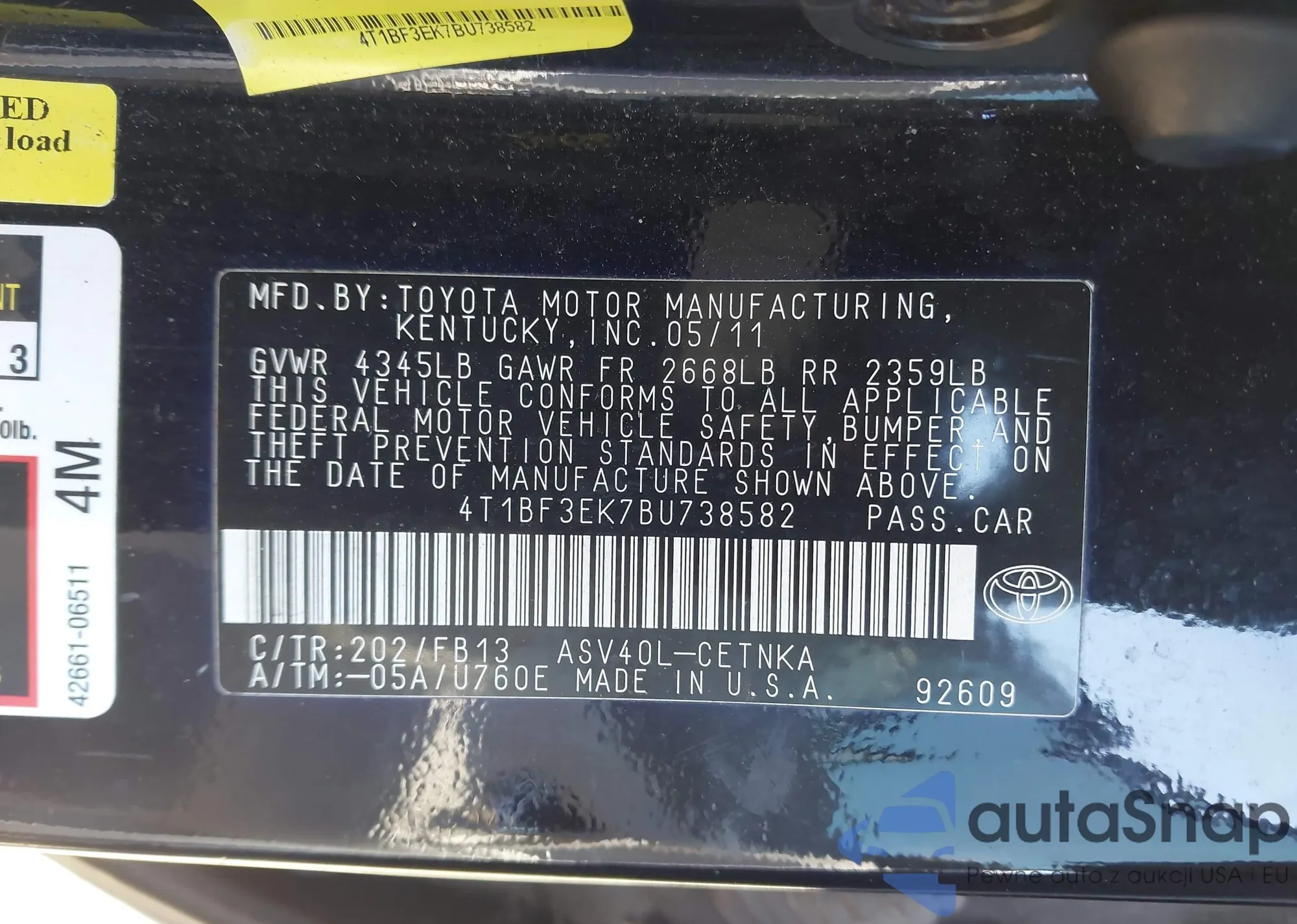 • VIN WBAPK5C53BA654174