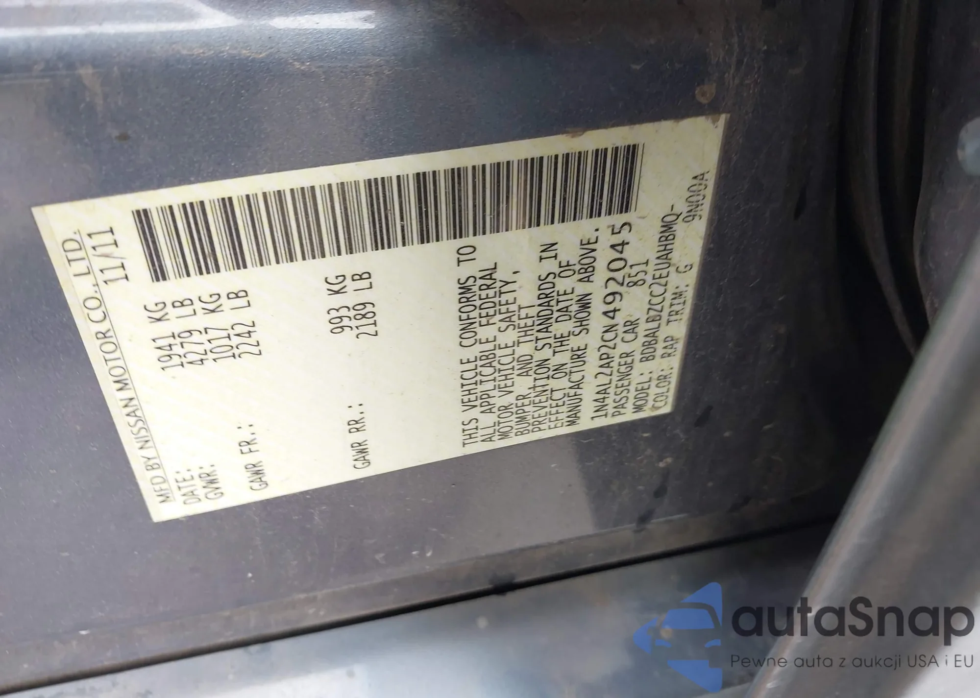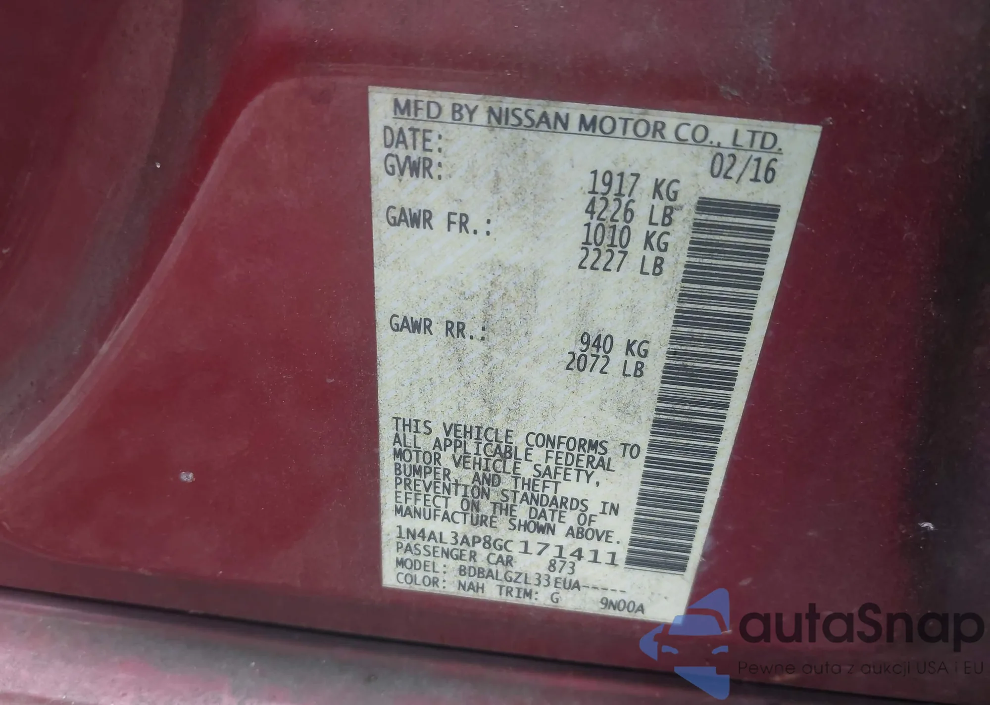 LOT: 43842816 VIN: 1N4AL3AP8DC917660