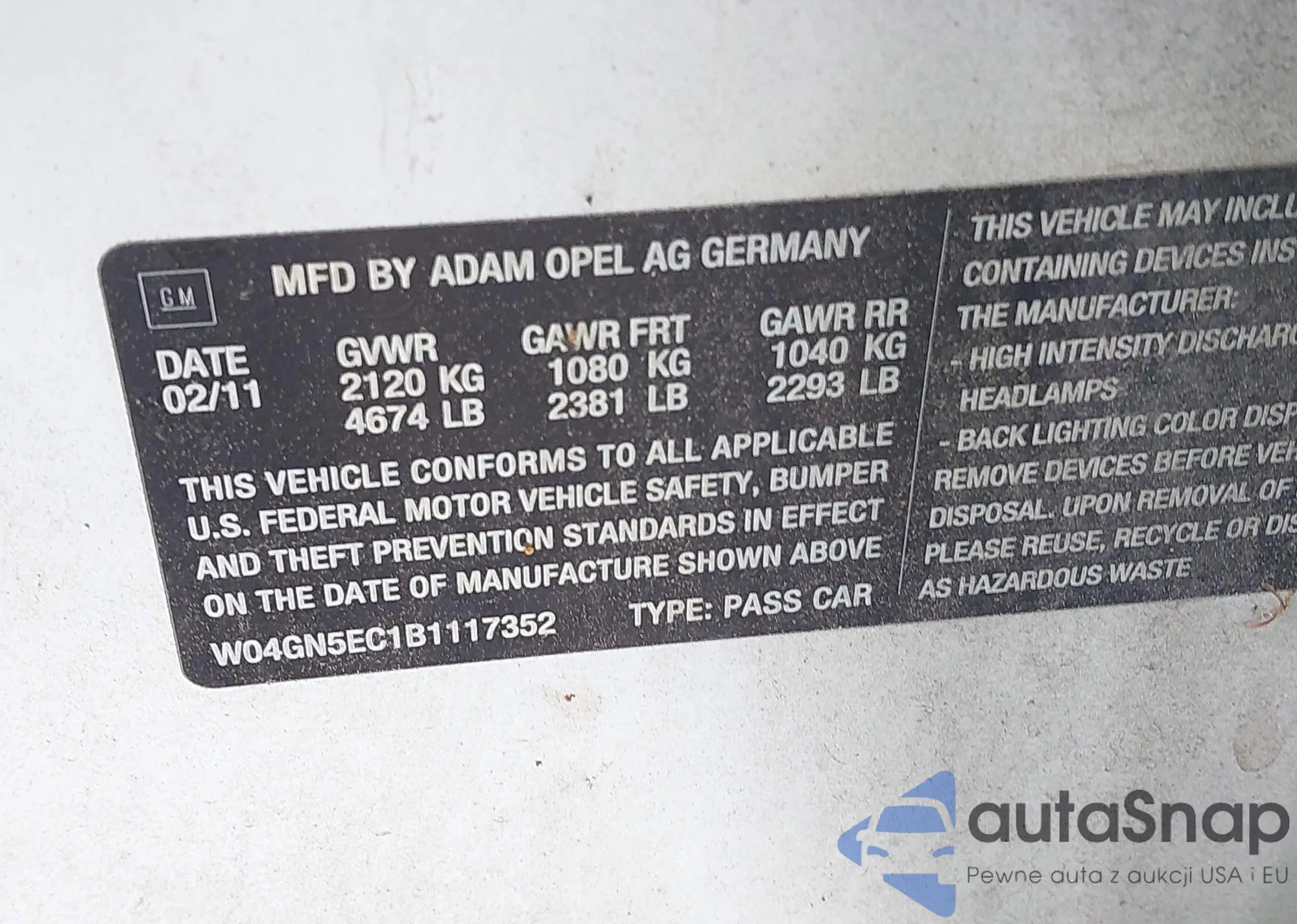 • VIN W04GN5EC1B1117352