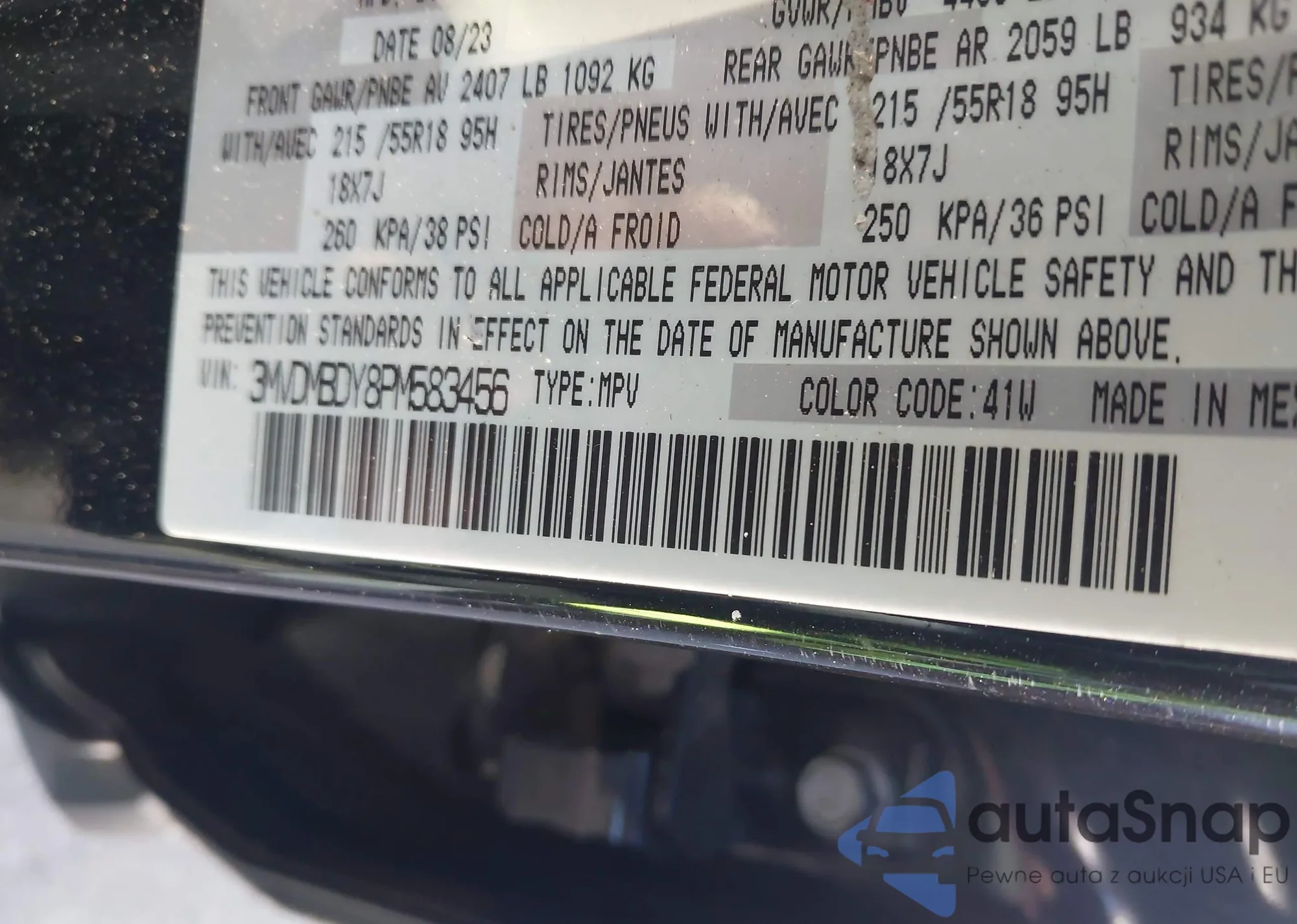 • VIN 3MVDMBDY8PM583456