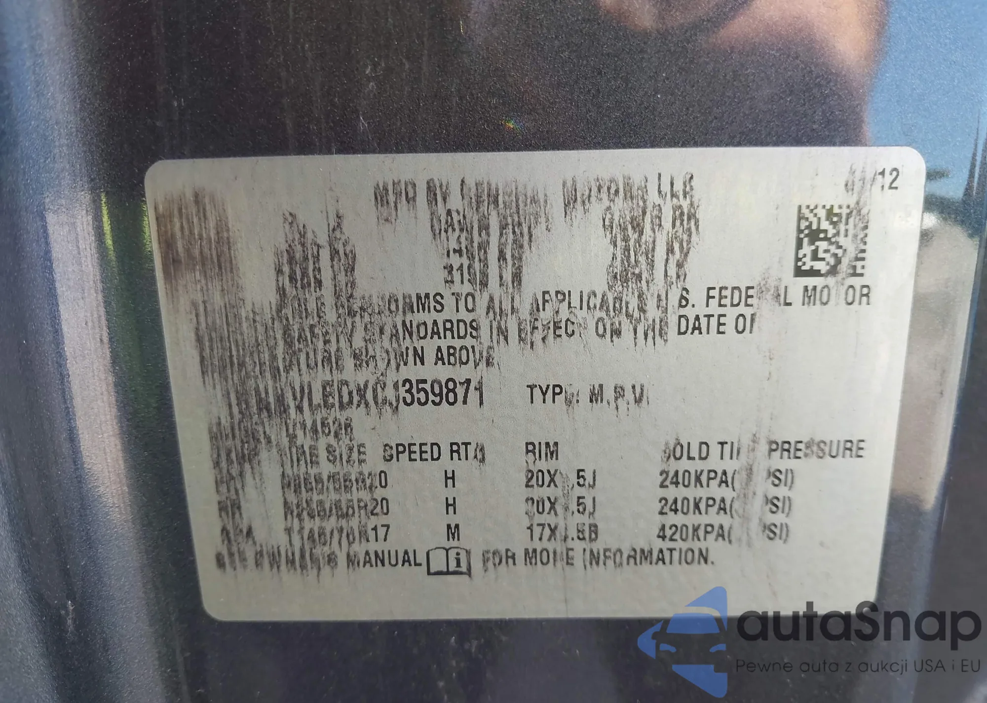 • VIN 1GNKVLEDXCJ359871