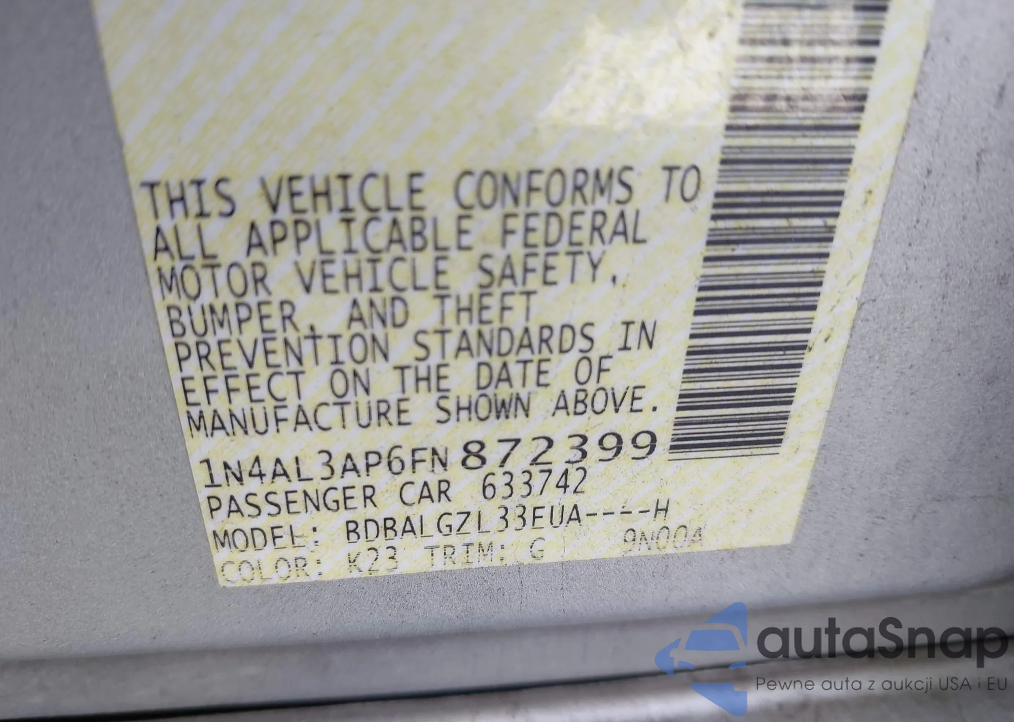 LOT: 43682882 VIN: 1N4AL3AP6FN872399
