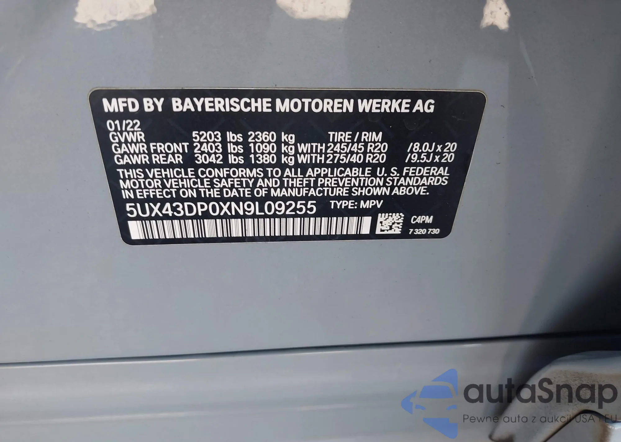 • VIN 1HGCV3F47MA003103