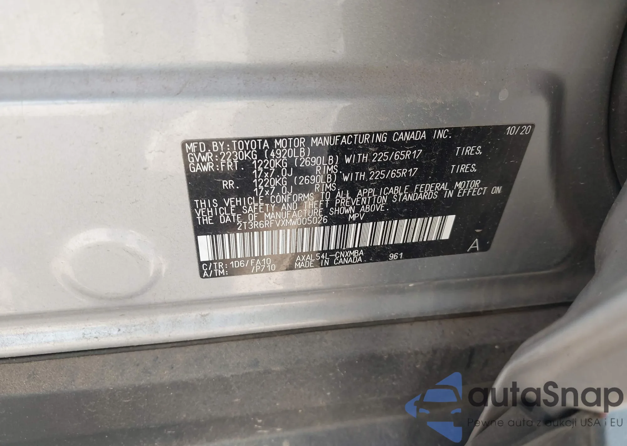 LOT: 43538473 VIN: 1HGCV3F47MA003103