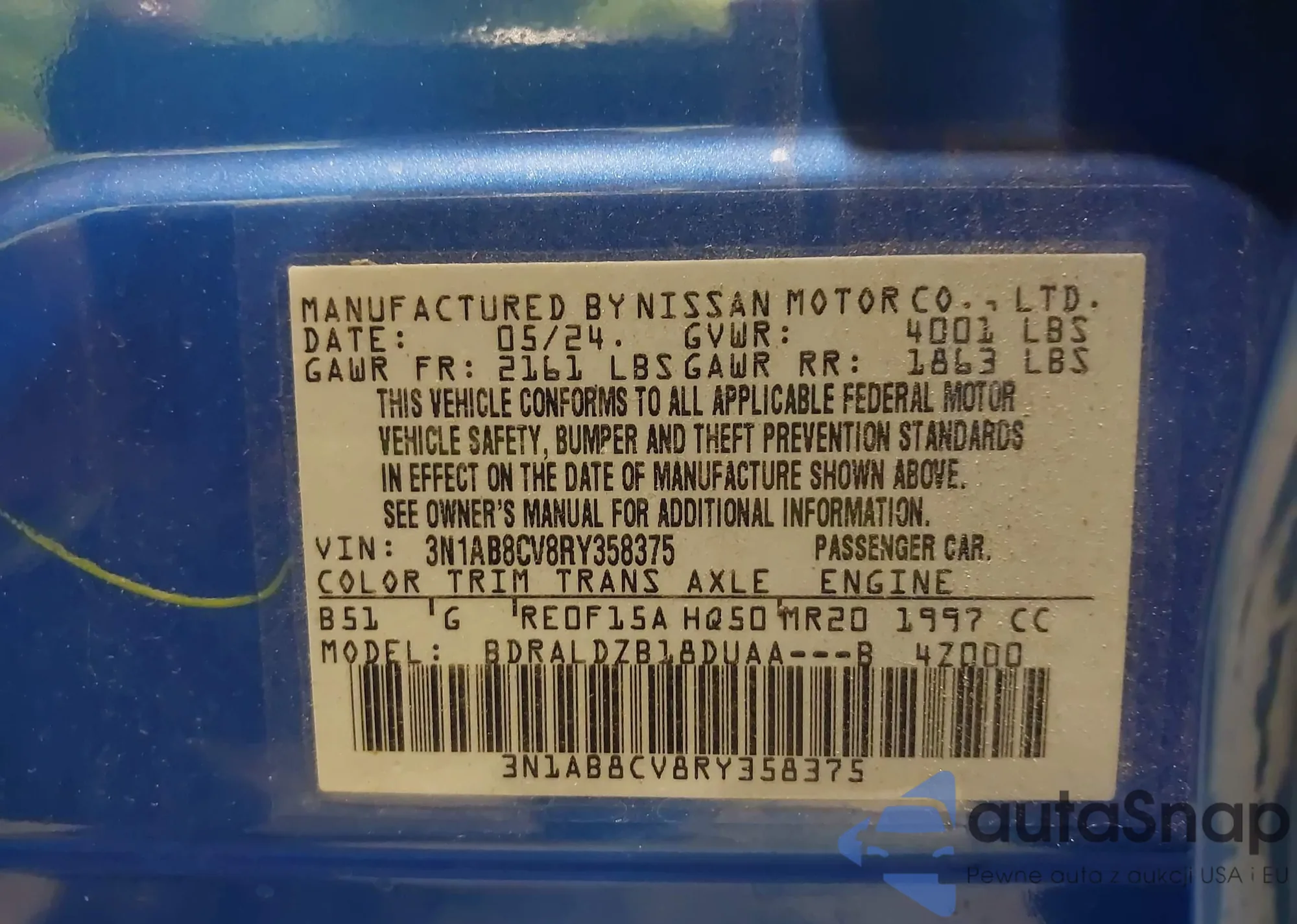 • VIN 3N1AB8CV8RY358375