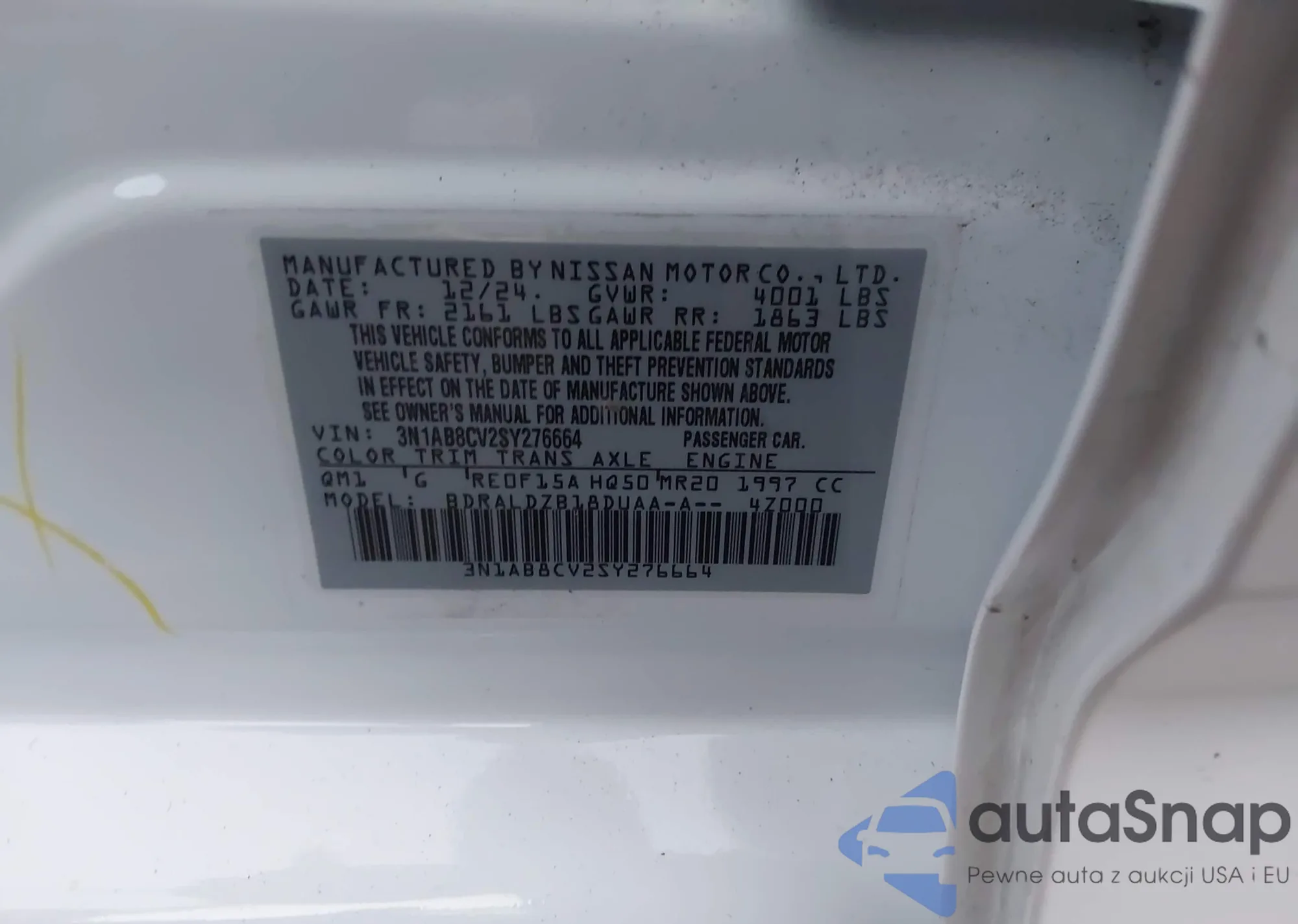 LOT: 43708415 VIN: 3N1AB8CV2SY276664