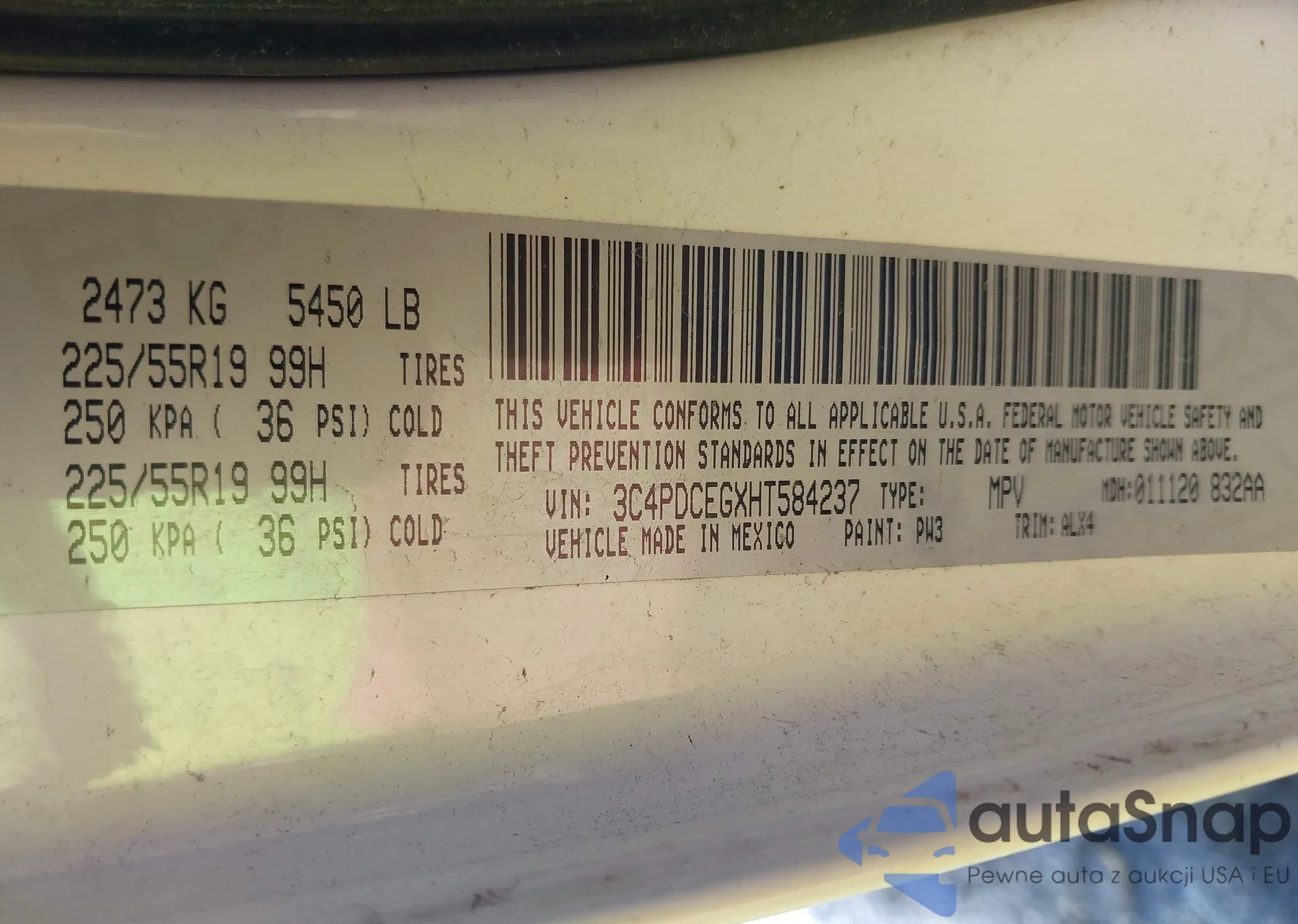 • VIN 3C4PDCEGXHT584237