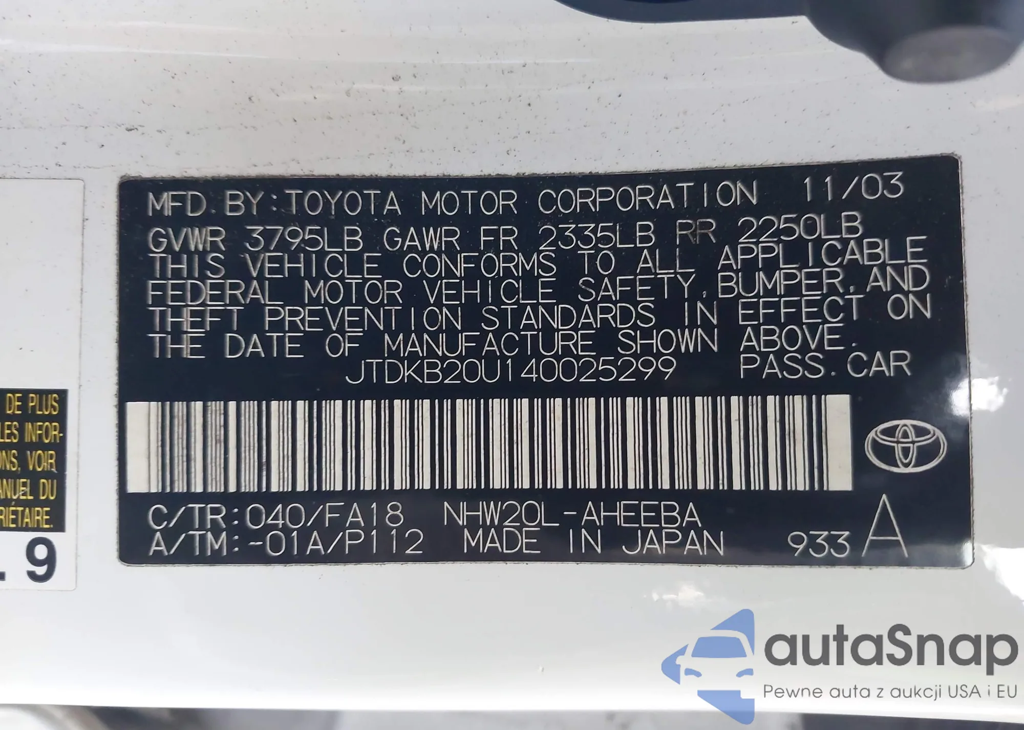• VIN 1N4BL4EW7PN400712
