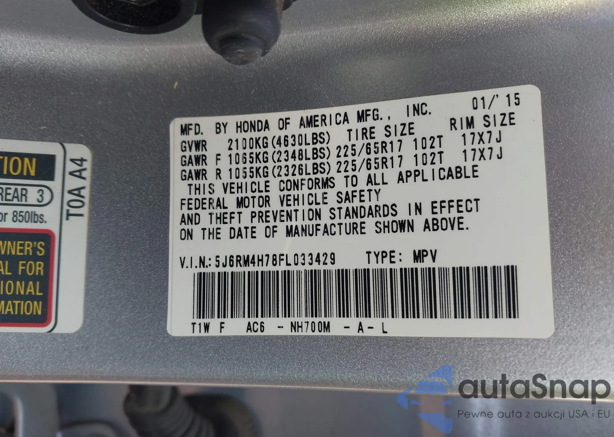• VIN 5FNYF6H74NB046543
