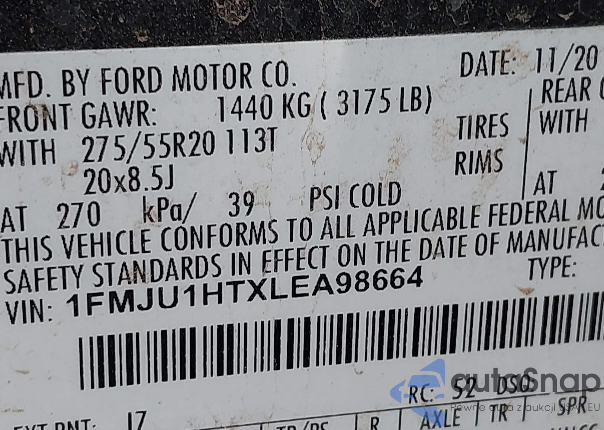 • VIN 1C4RJFBM3EC321558