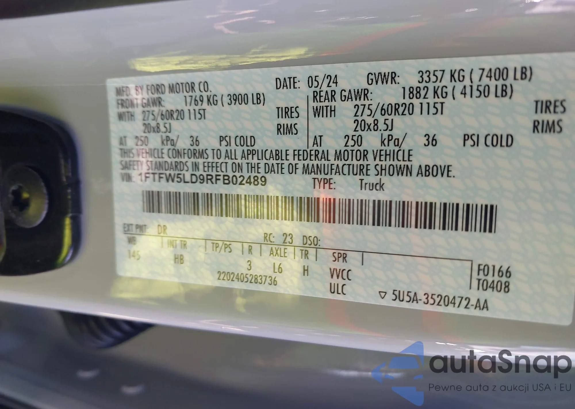 • VIN 1FTFW5LD9RFB02489