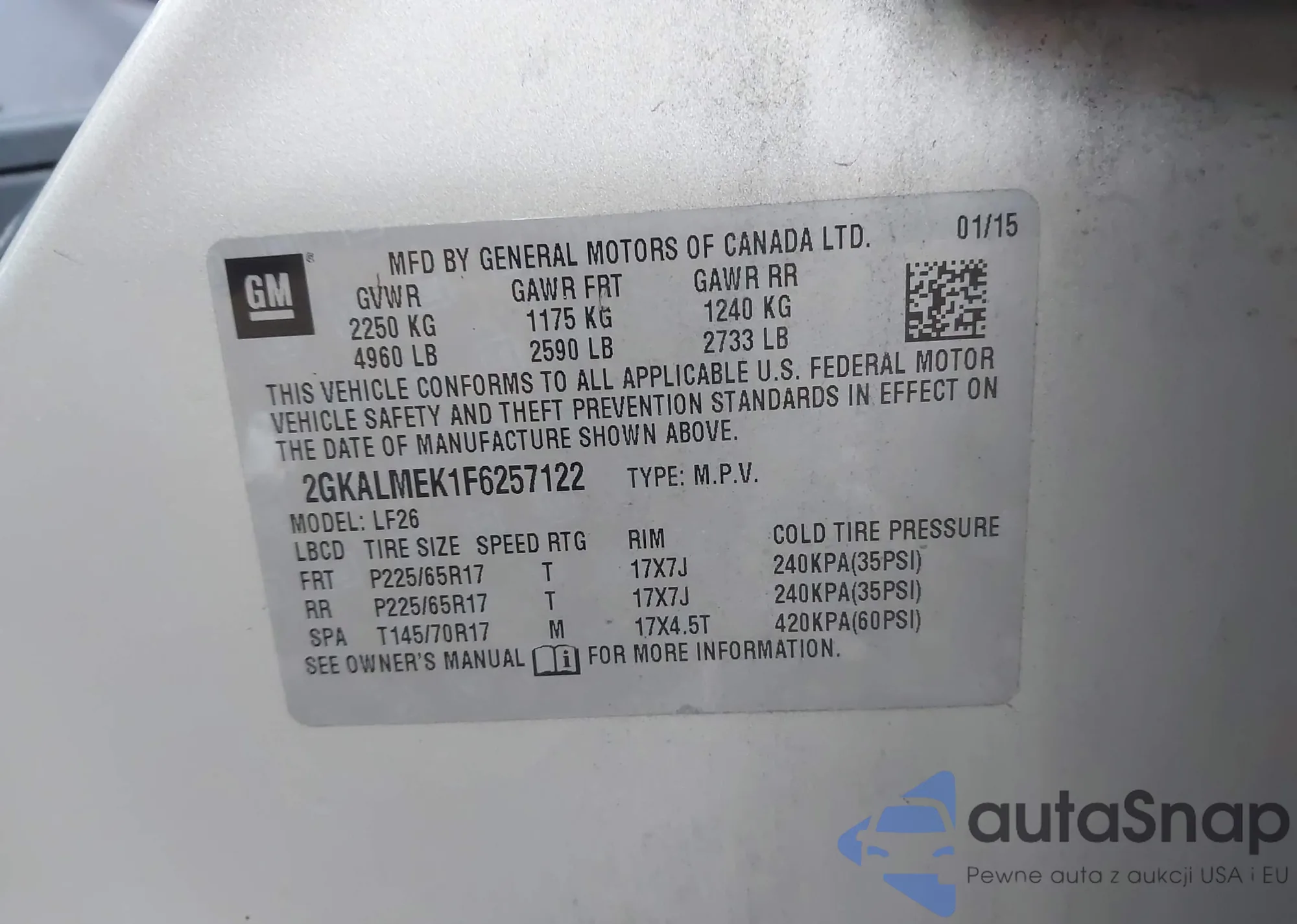 • VIN 2GKALMEK1F6257122