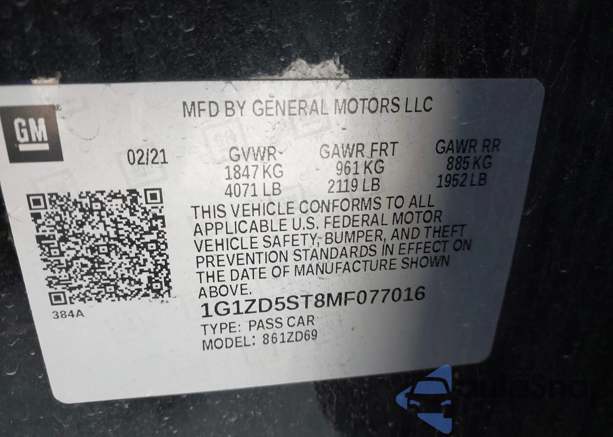 • VIN 1G1ZD5ST8MF077016