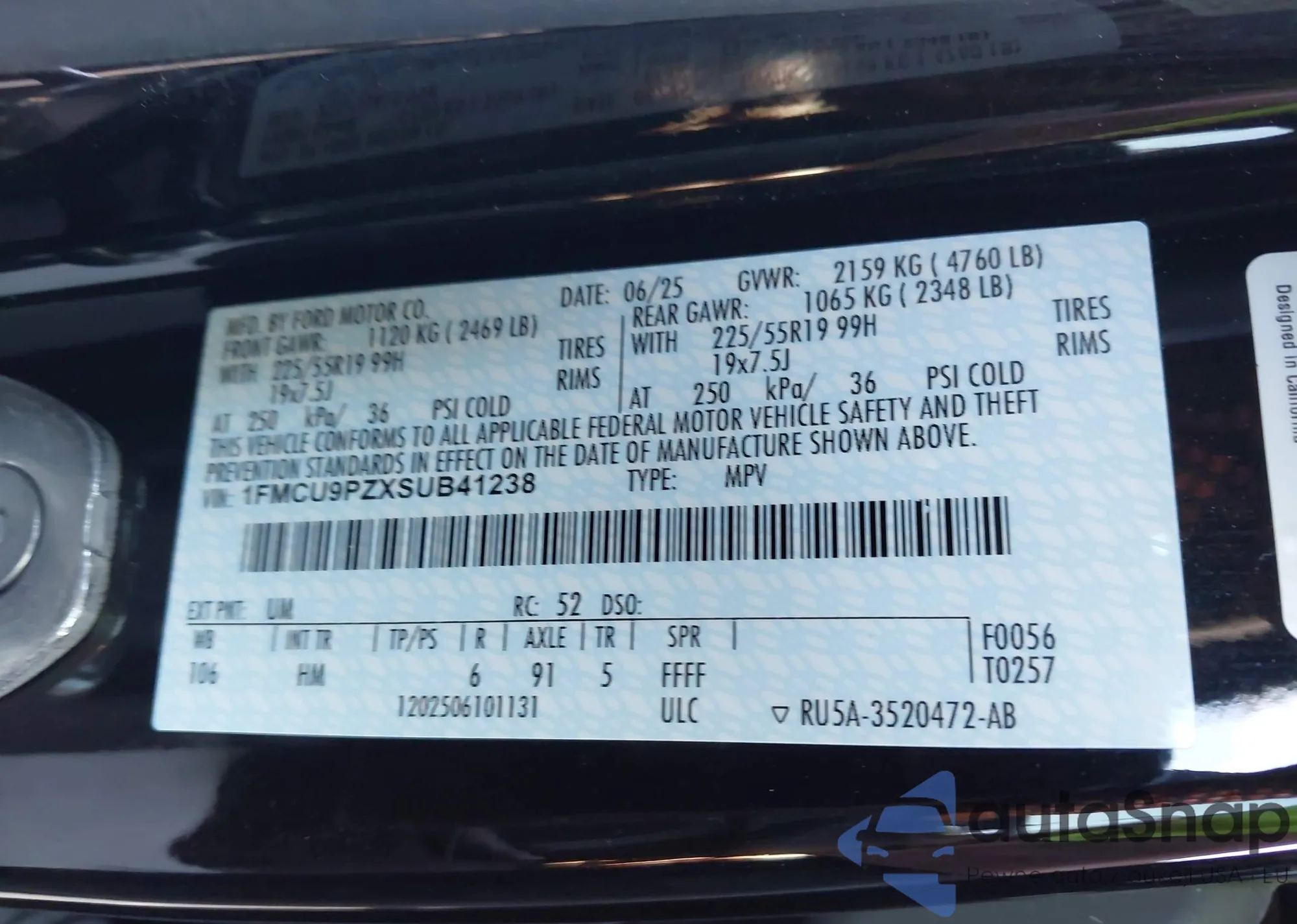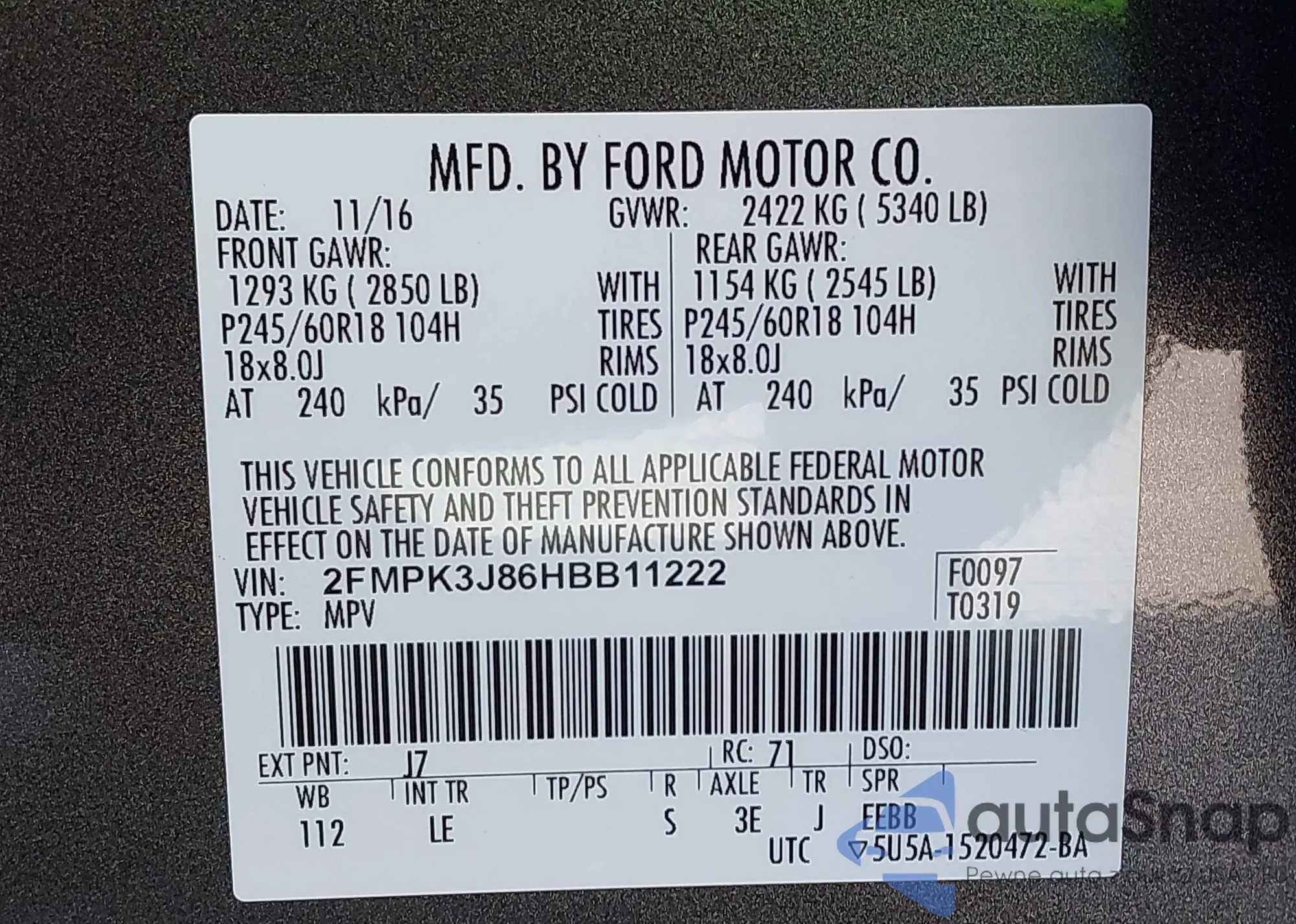 • VIN 2FMPK3J86HBB11222