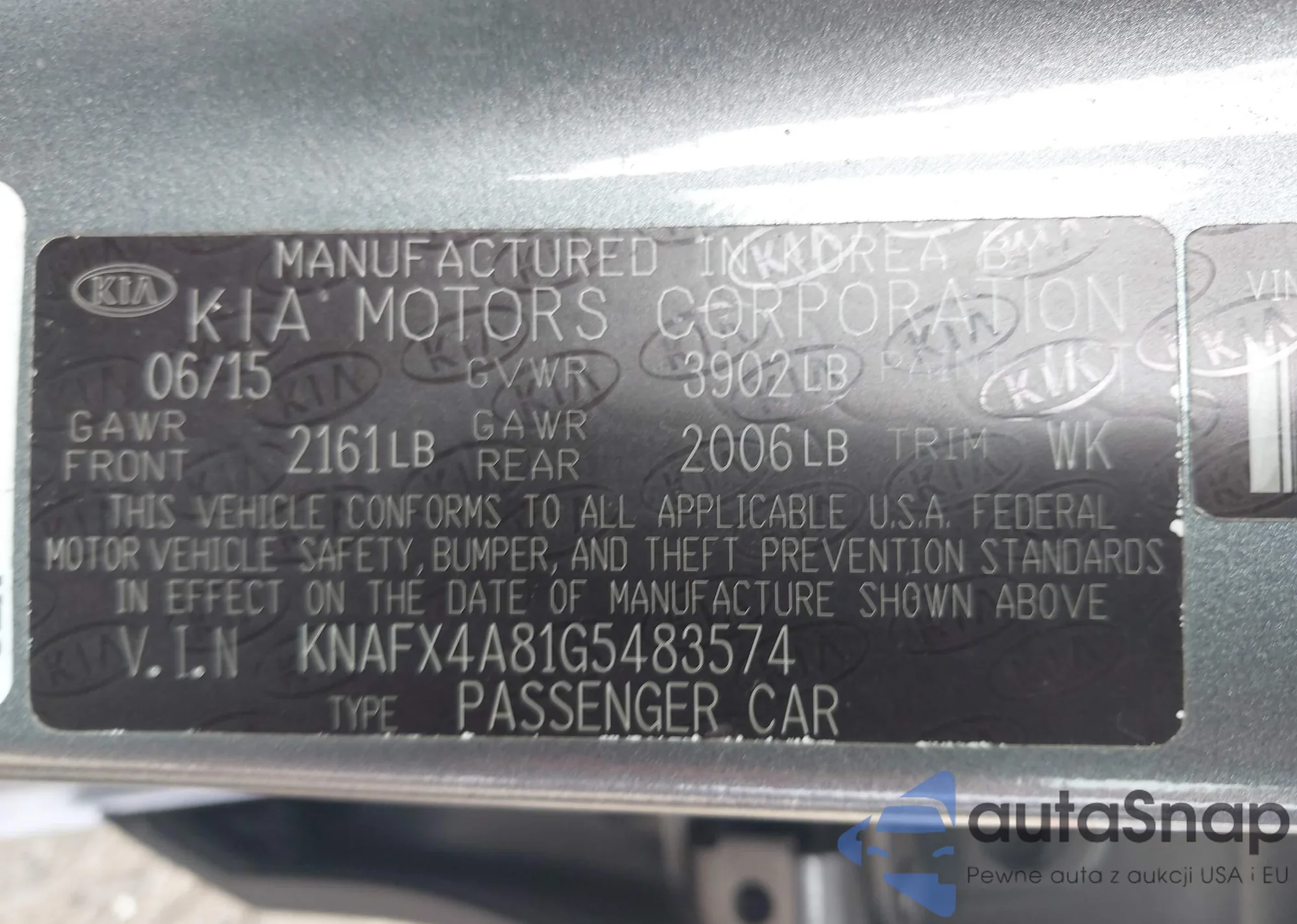 LOT: 43432919 VIN: KNAFX4A81G5483574
