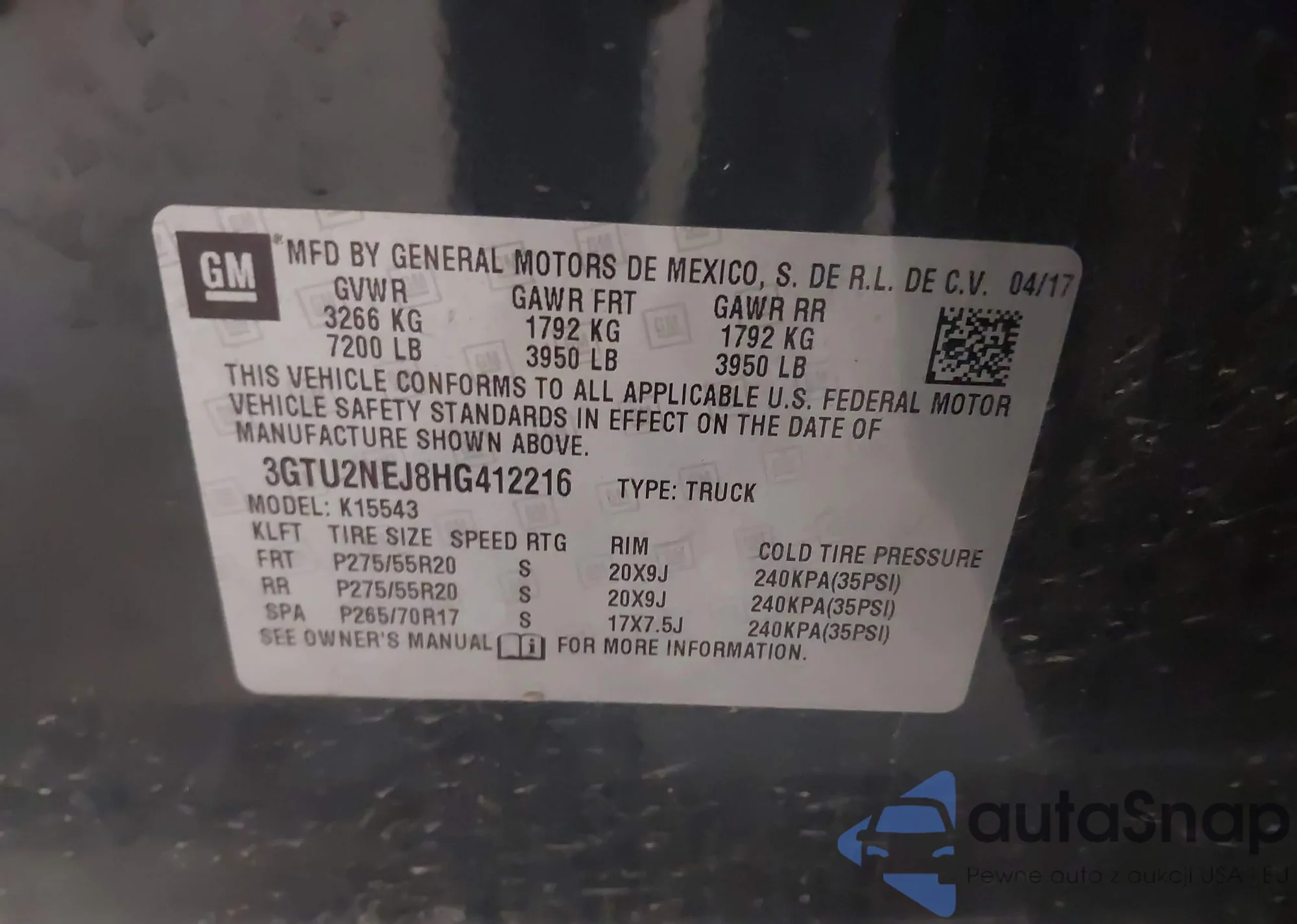 LOT: 43508594 VIN: 7SAYGDEE5TA465020