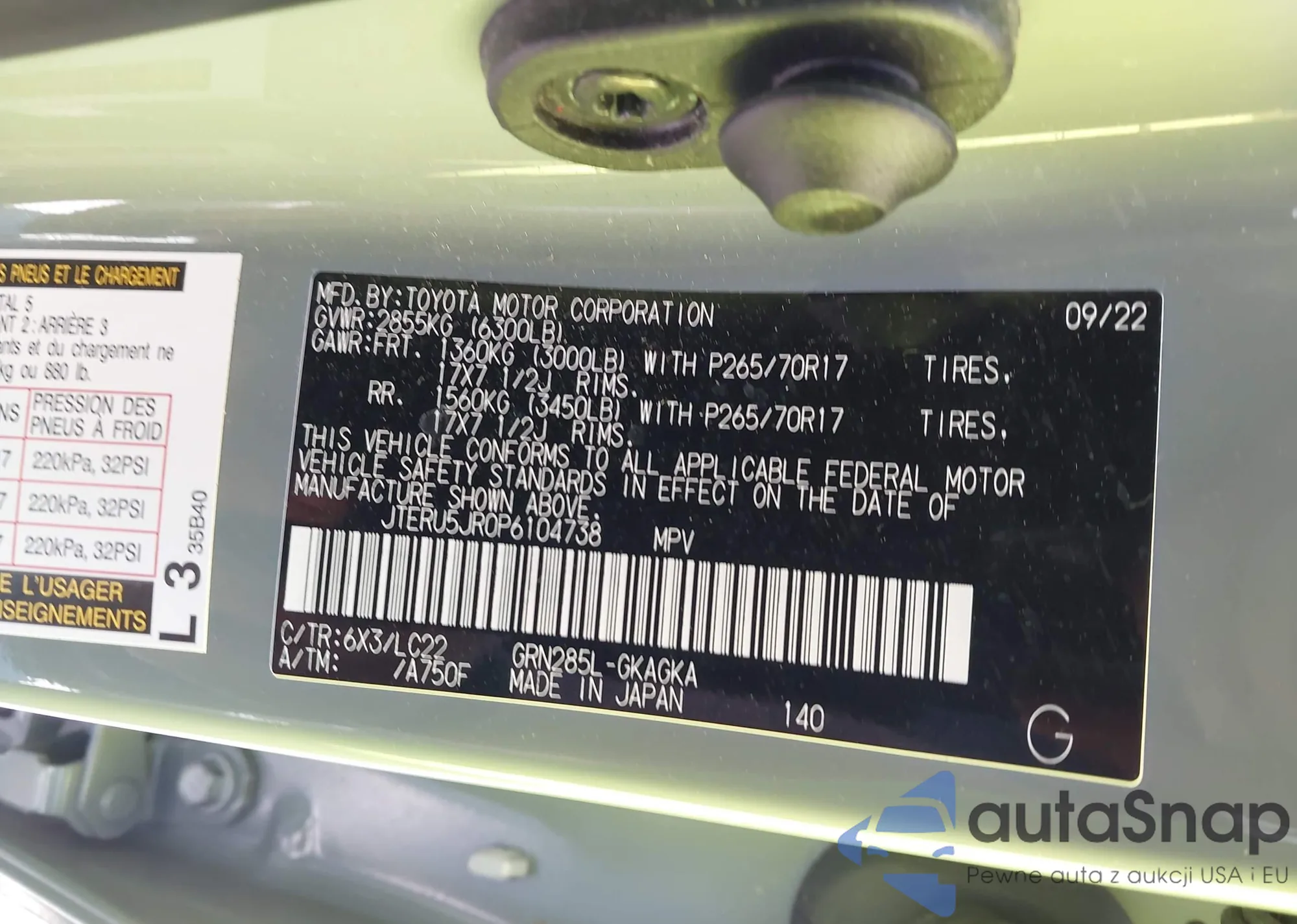 • VIN 7SAYGDEE5TA465020