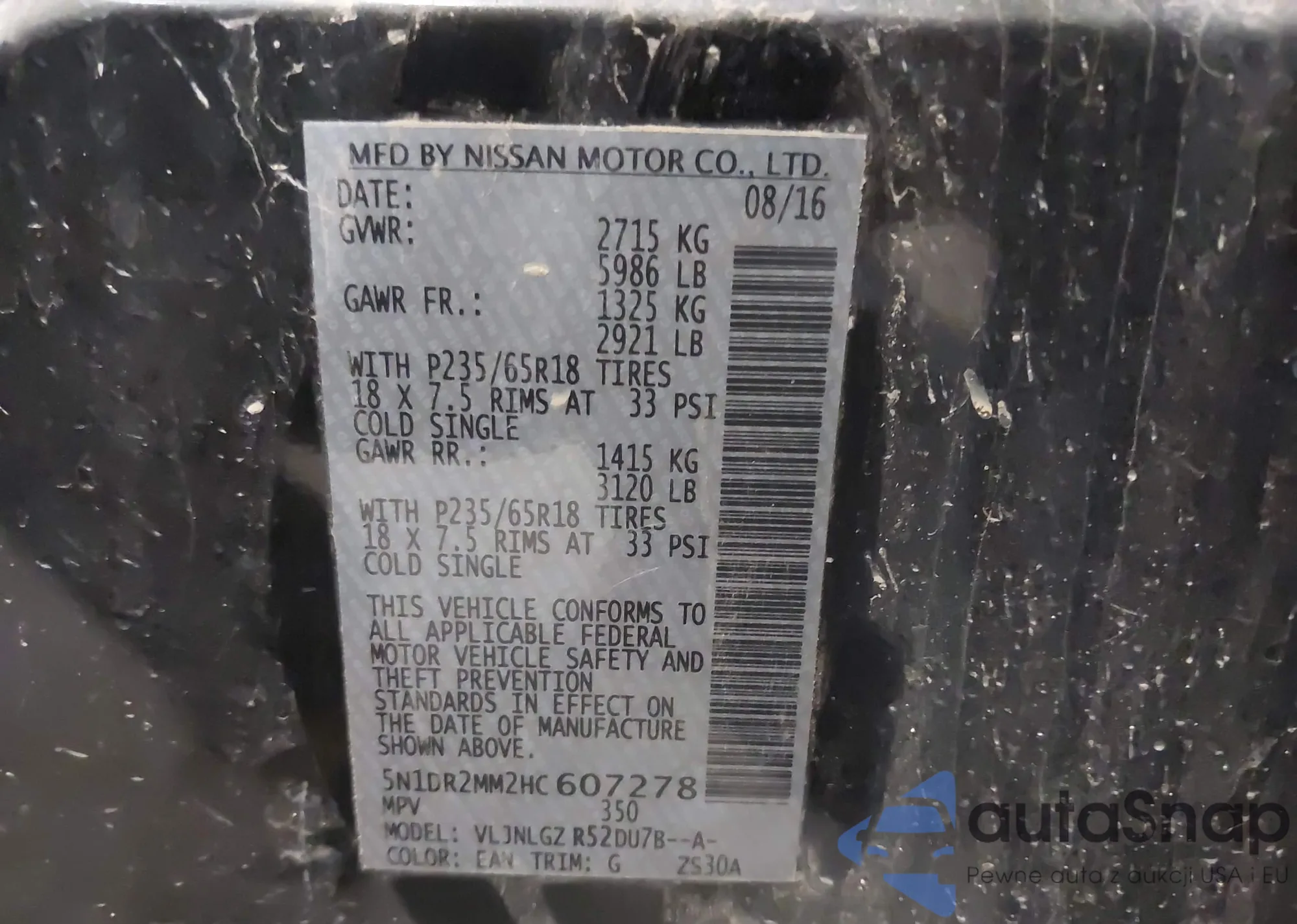• VIN 5N1DR2MM2HC607278