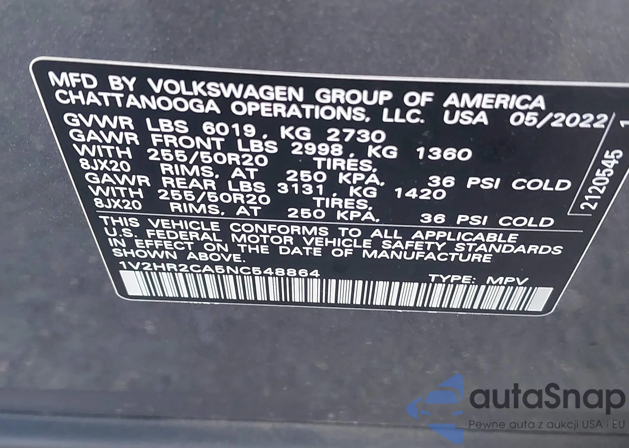 • VIN 1V2HR2CA5NC548864