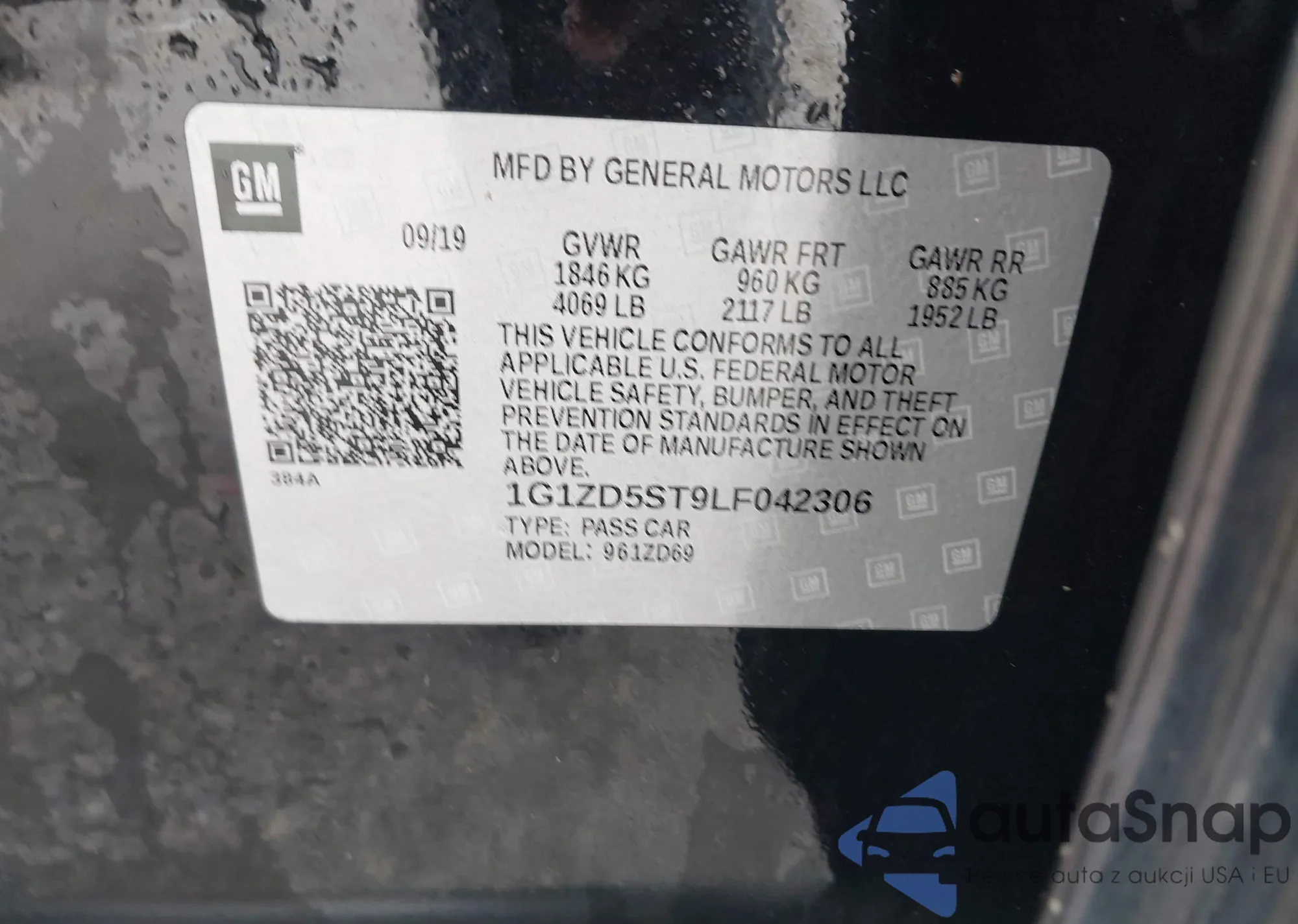 LOT: 43535938 VIN: 1G1ZD5ST9LF042306