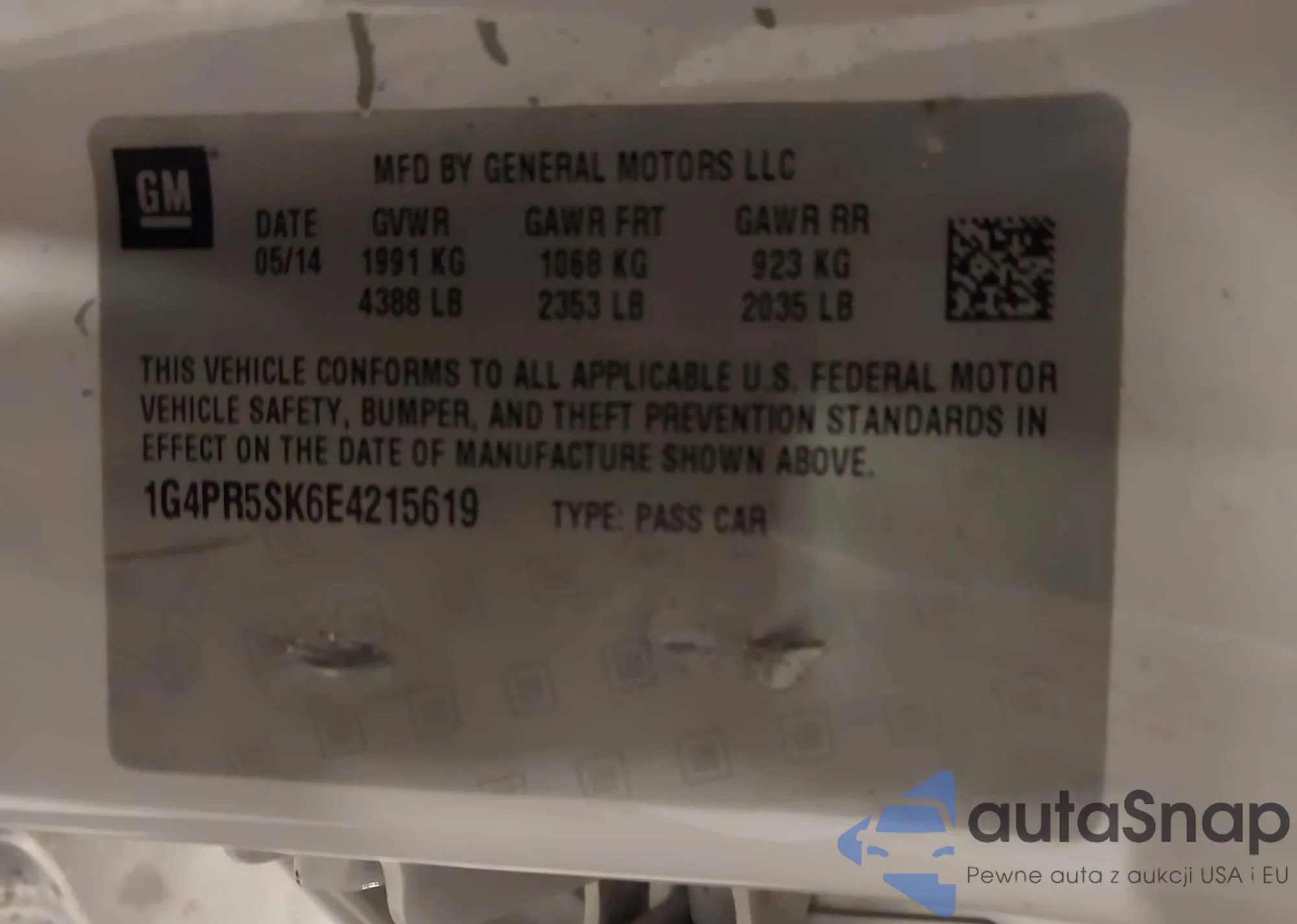 • VIN 1G4PR5SK6E4215619