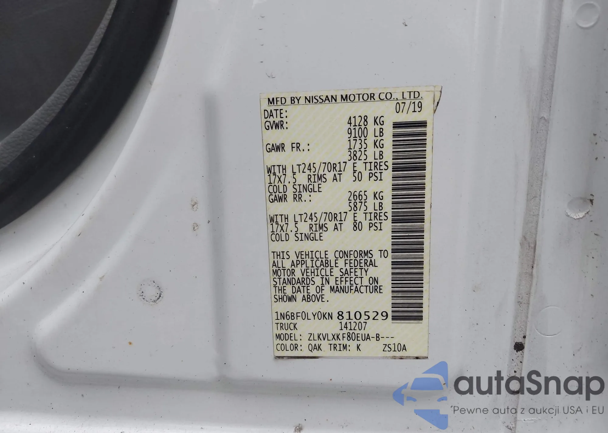 LOT: 43800575 VIN: 1N6BF0LY0KN810529