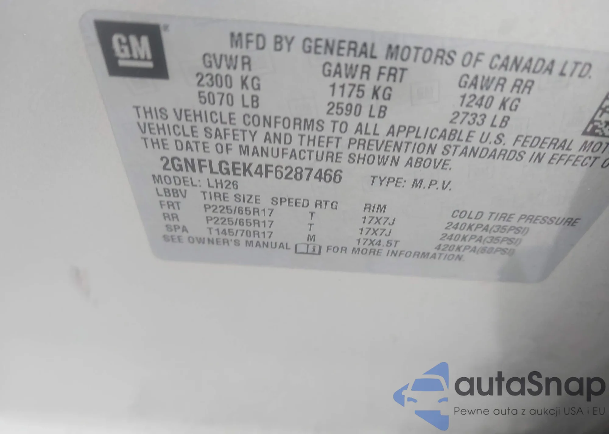 • VIN 2GNFLGEK4F6287466