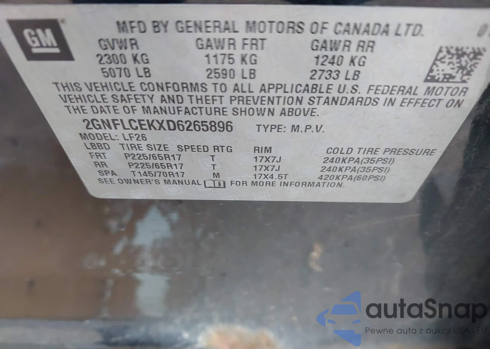 LOT: 43957128 VIN: 2GNFLGEK4F6287466