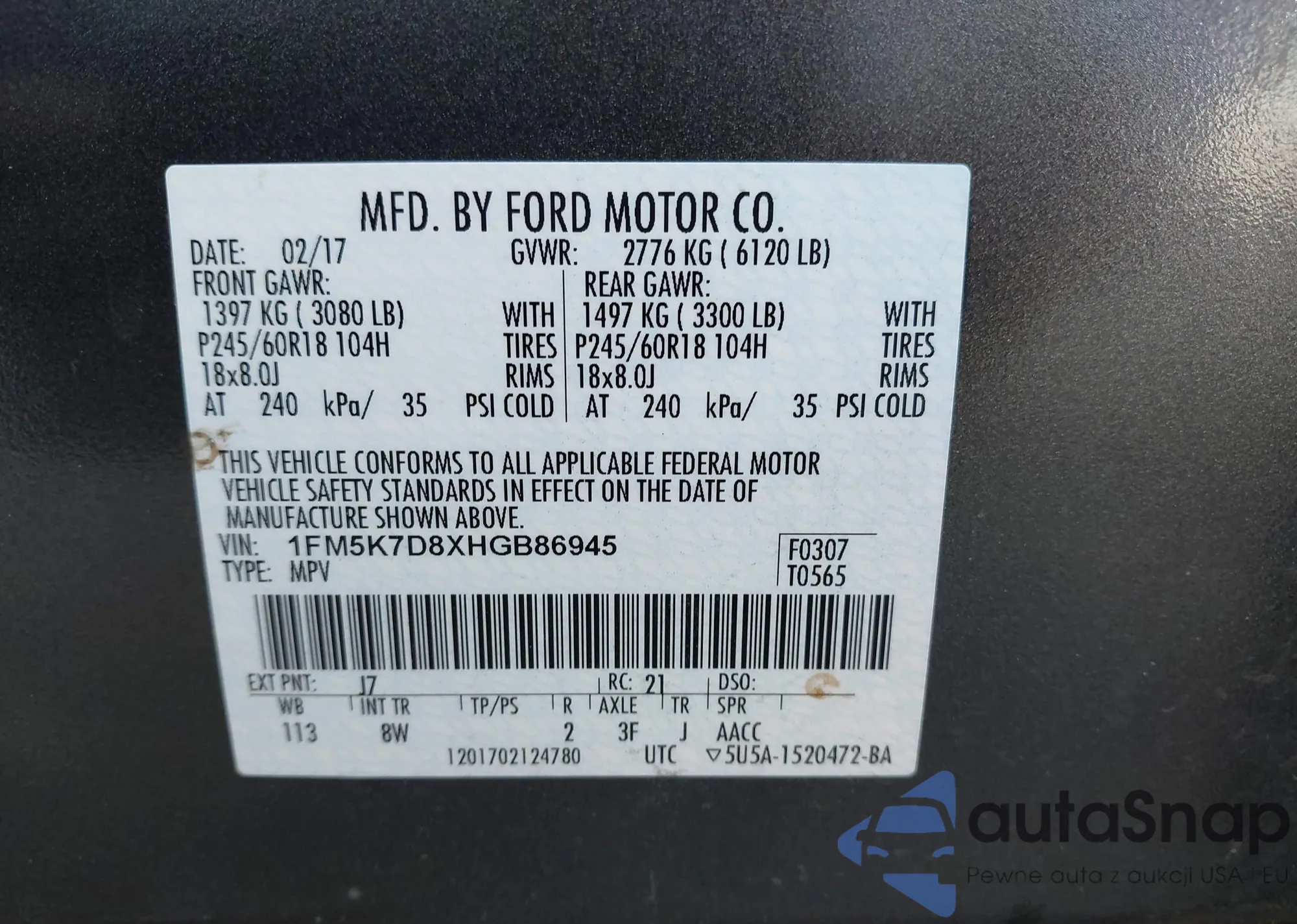 • VIN 1FM5K7D8XHGB86945