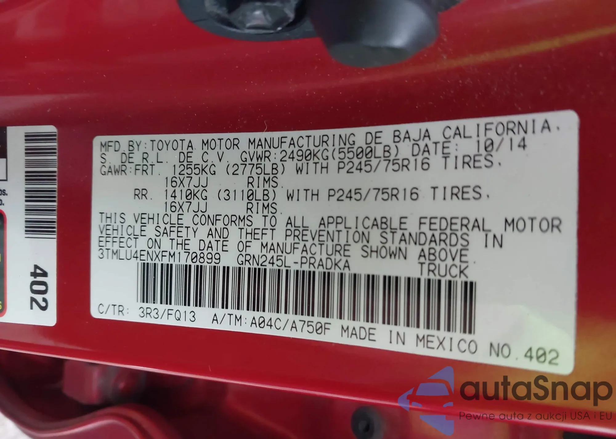 • VIN 3TMLU4ENXFM170899
