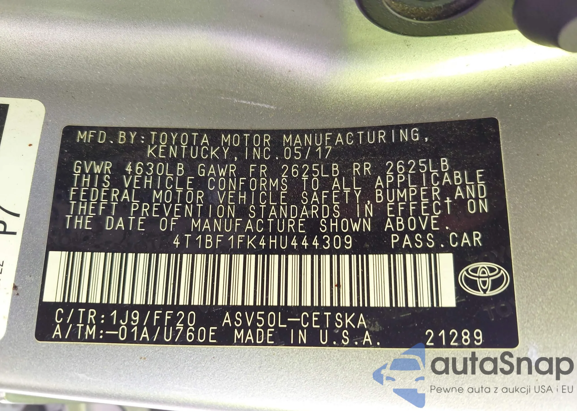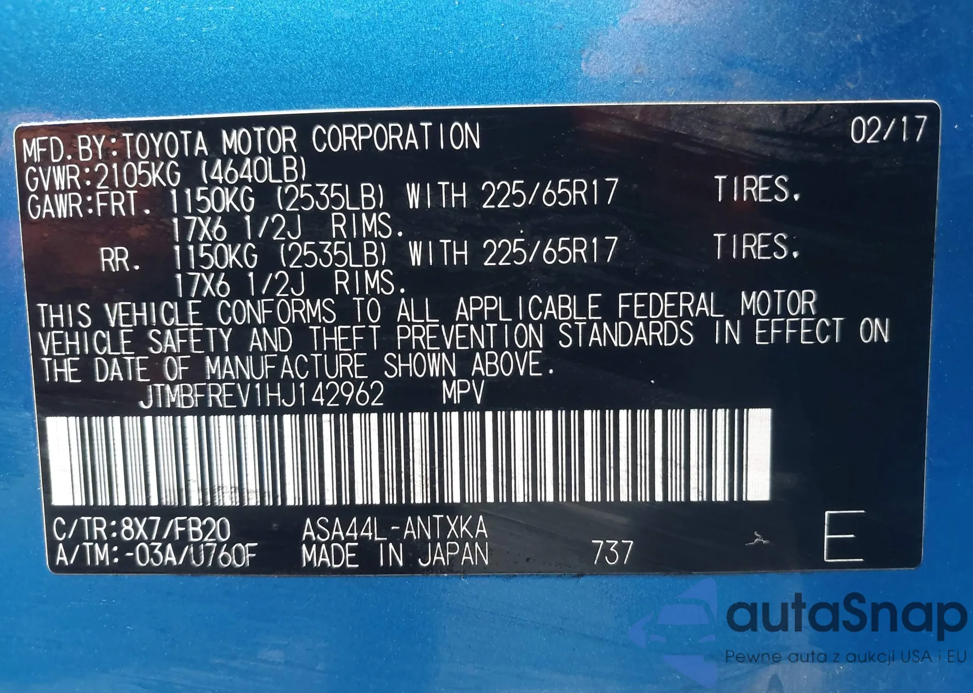 LOT: 43429675 VIN: JTMBFREV1HJ142962