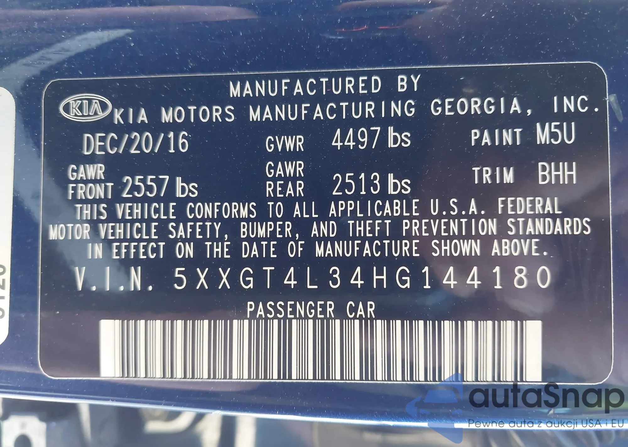 • VIN 5XXGT4L34HG144180