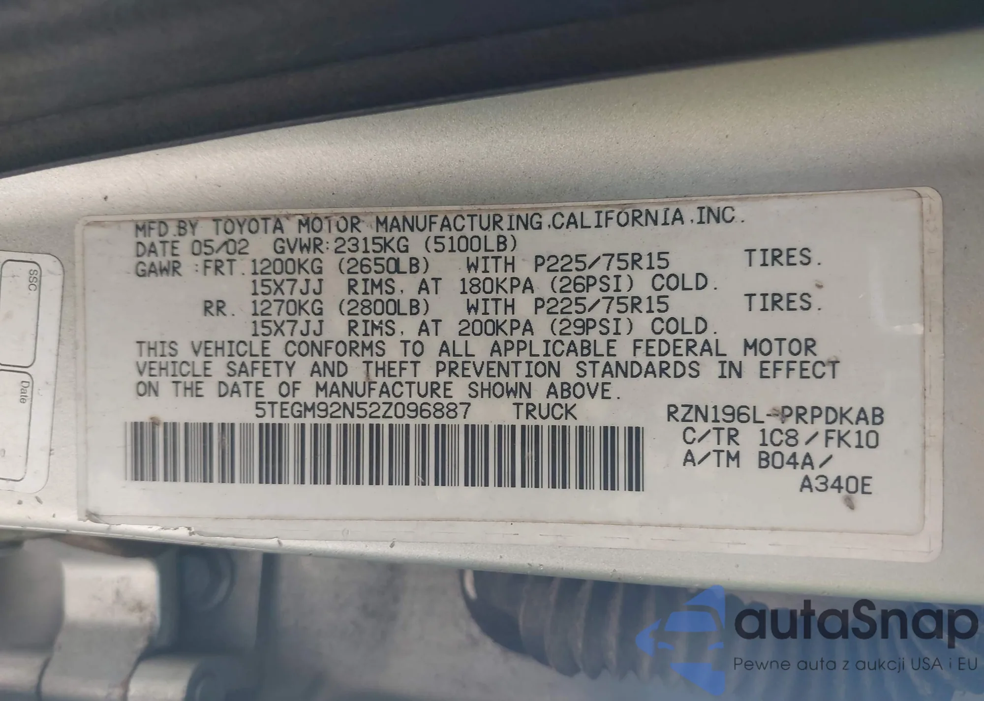 • VIN 7FARW1H55KE027277