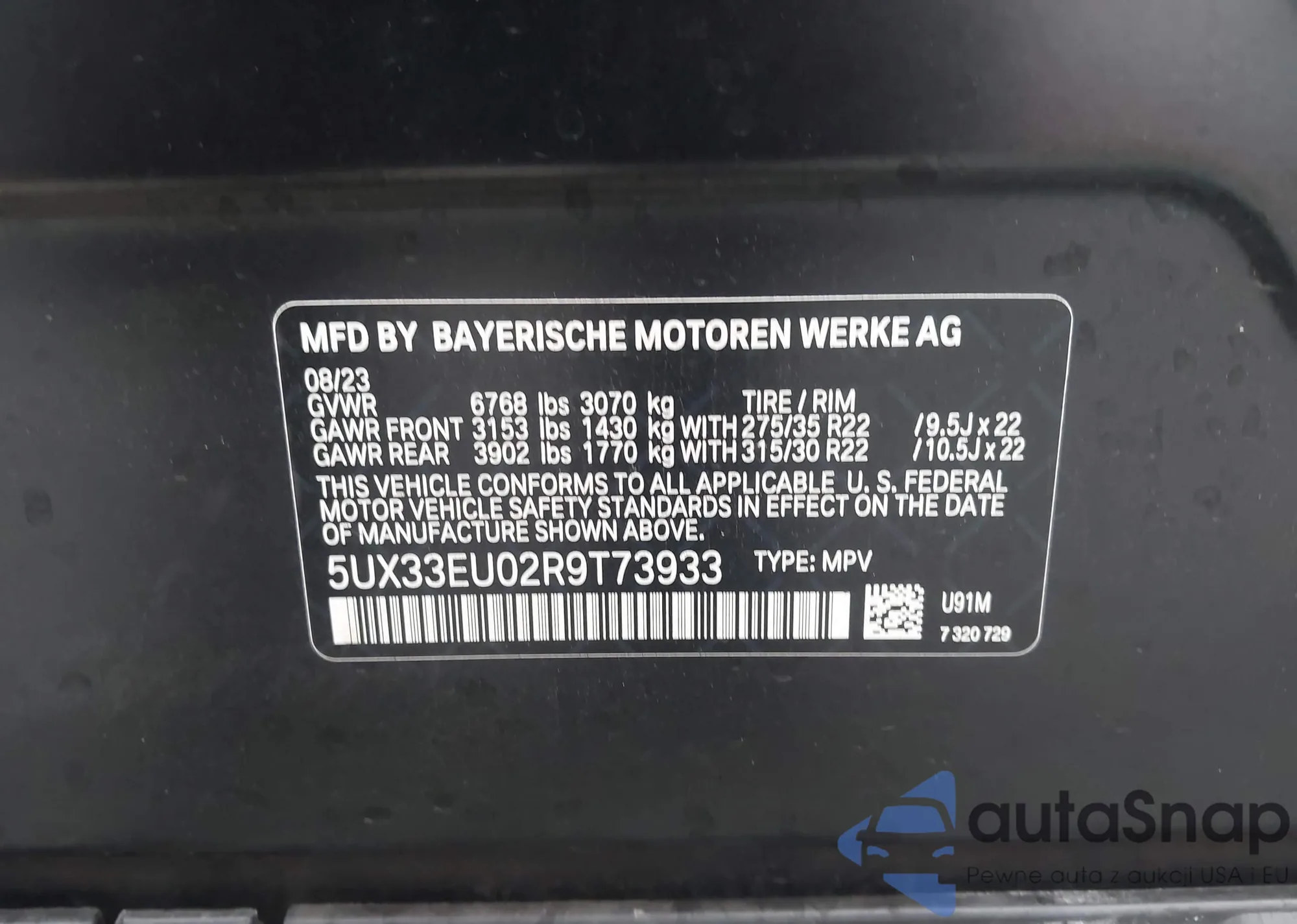 • VIN 5UX33EU02R9T73933