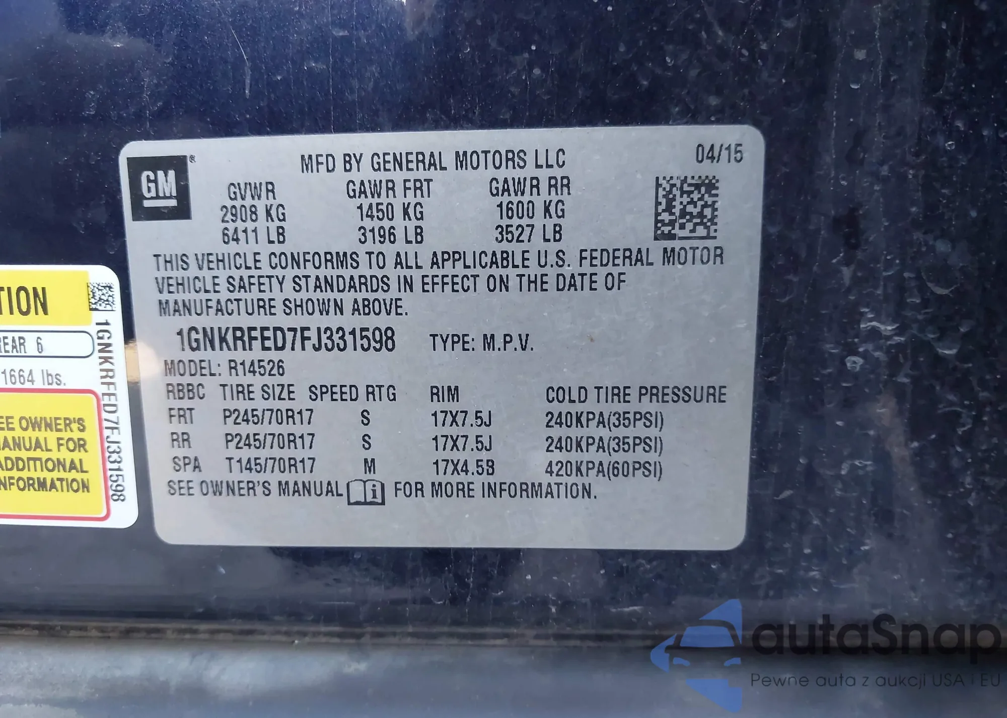 LOT: 43508904 VIN: 1GNKRFED7FJ331598