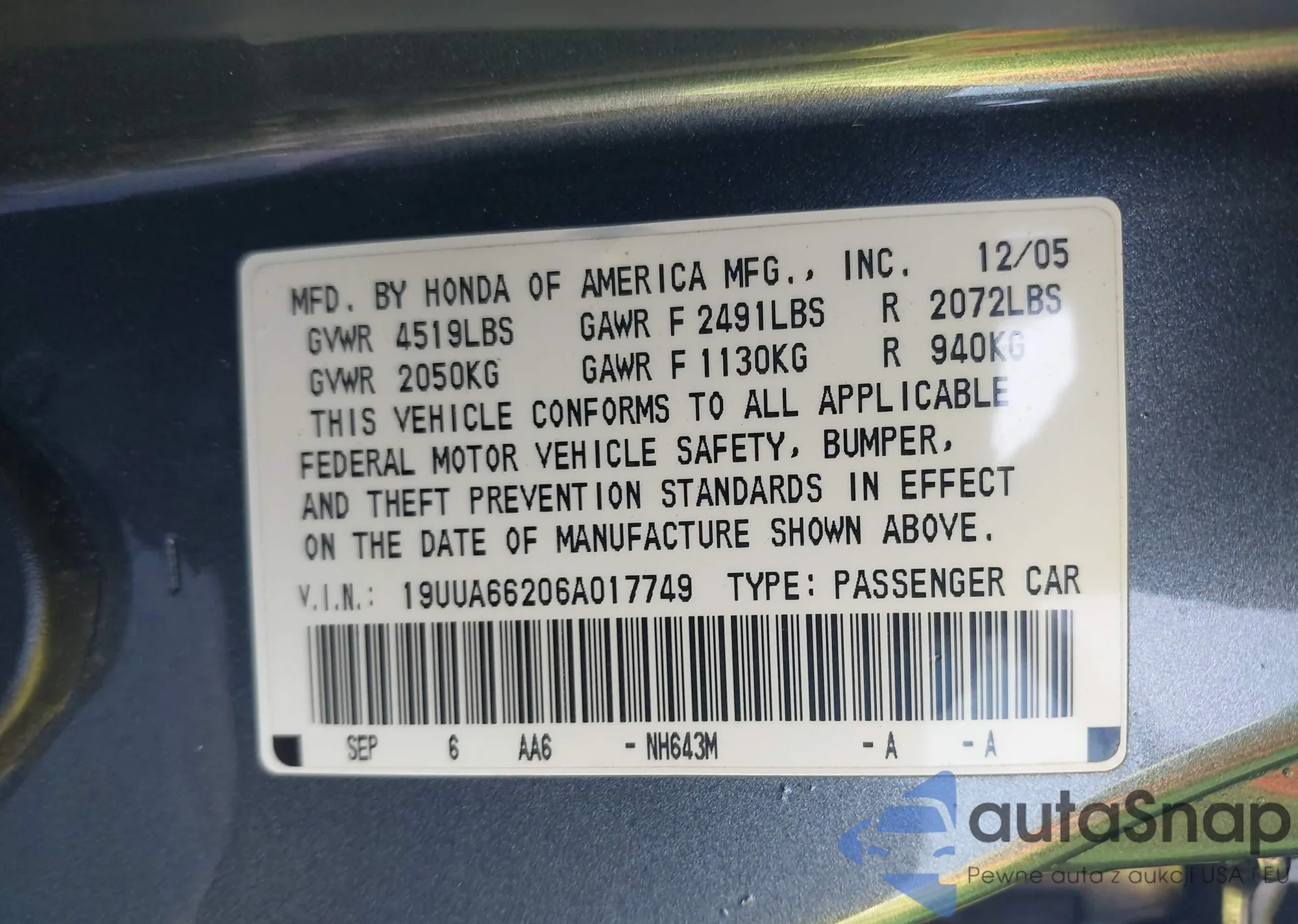 • VIN 19UUB6F57SA003350