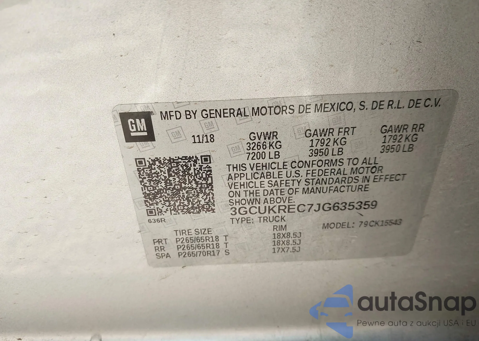 • VIN 3GCUKREC7JG635359