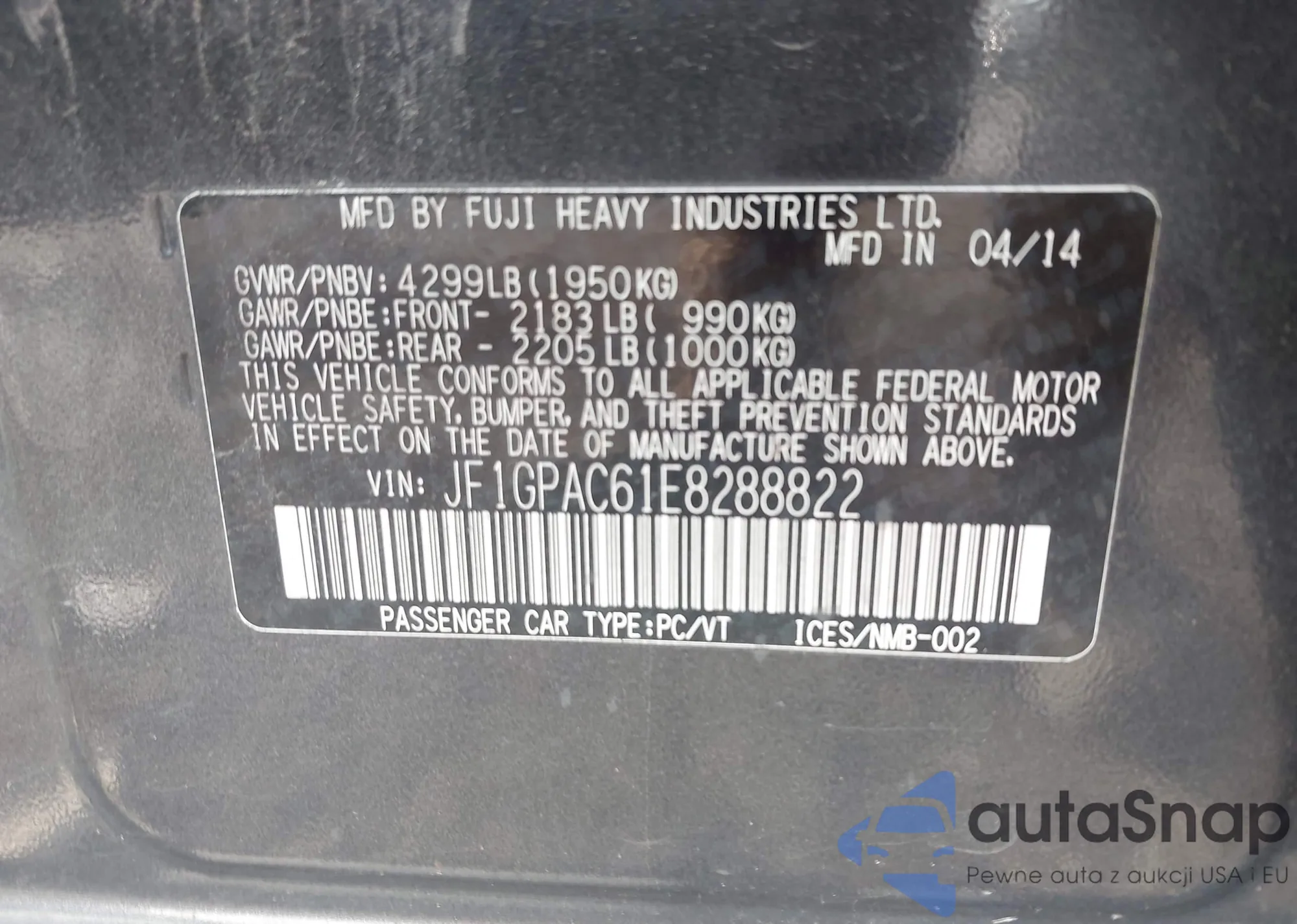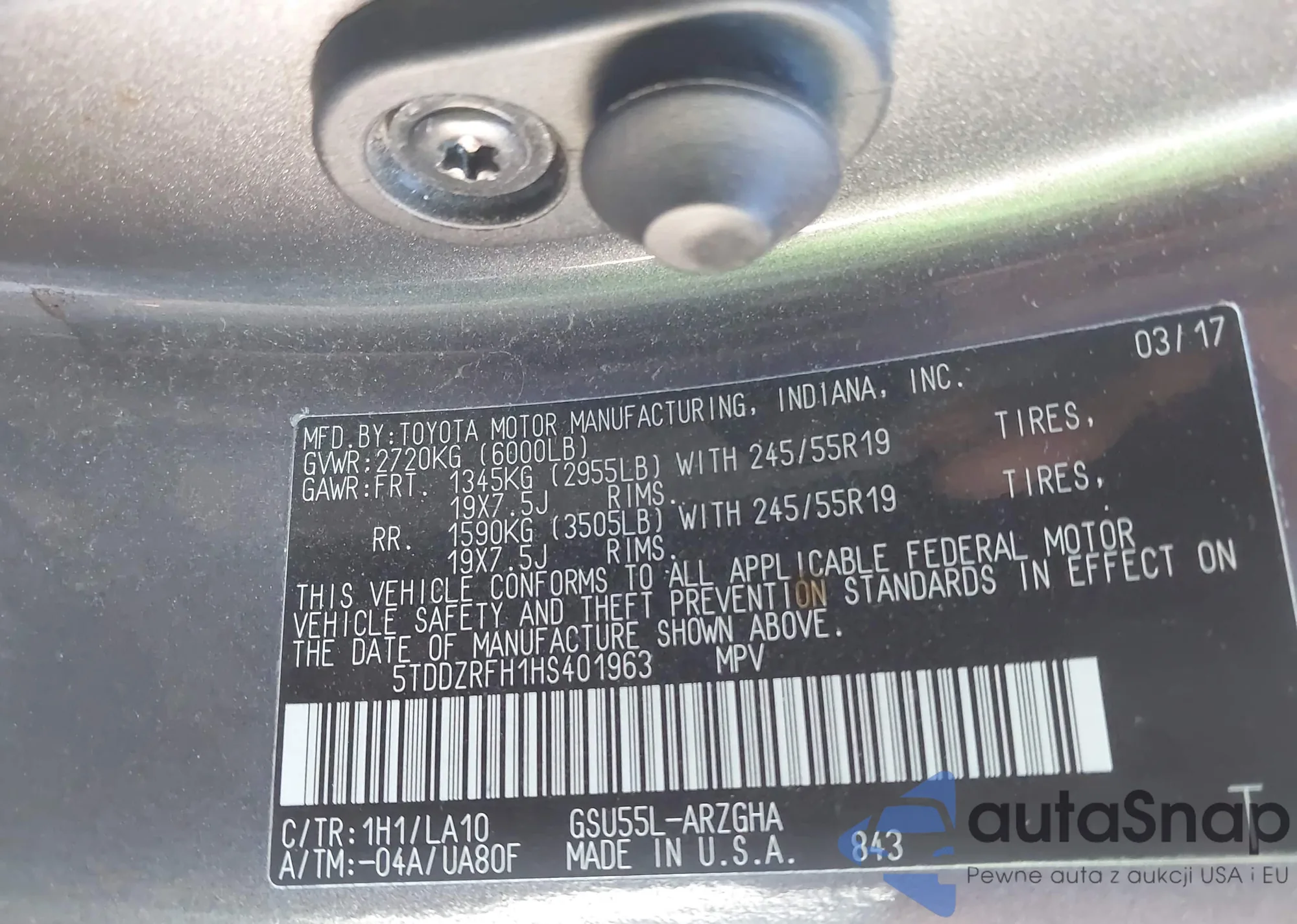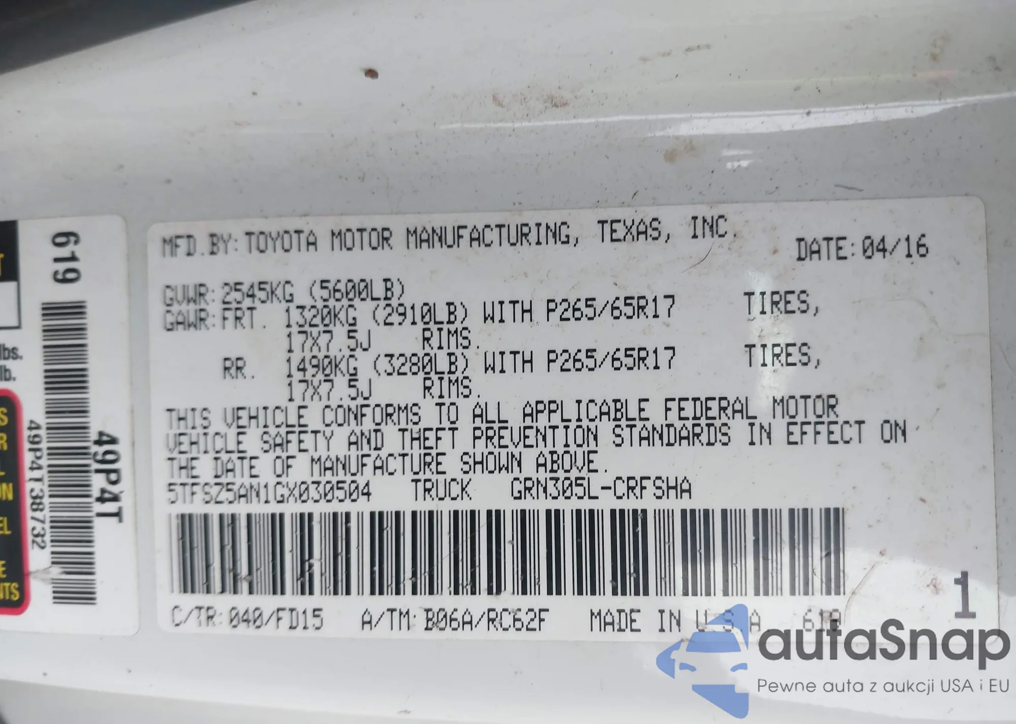 • VIN 5TFSZ5AN1GX030504