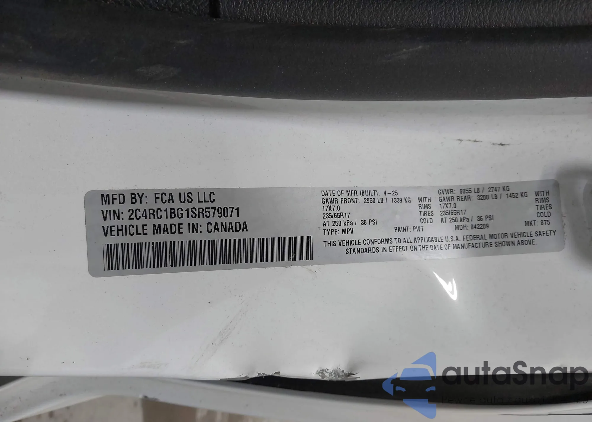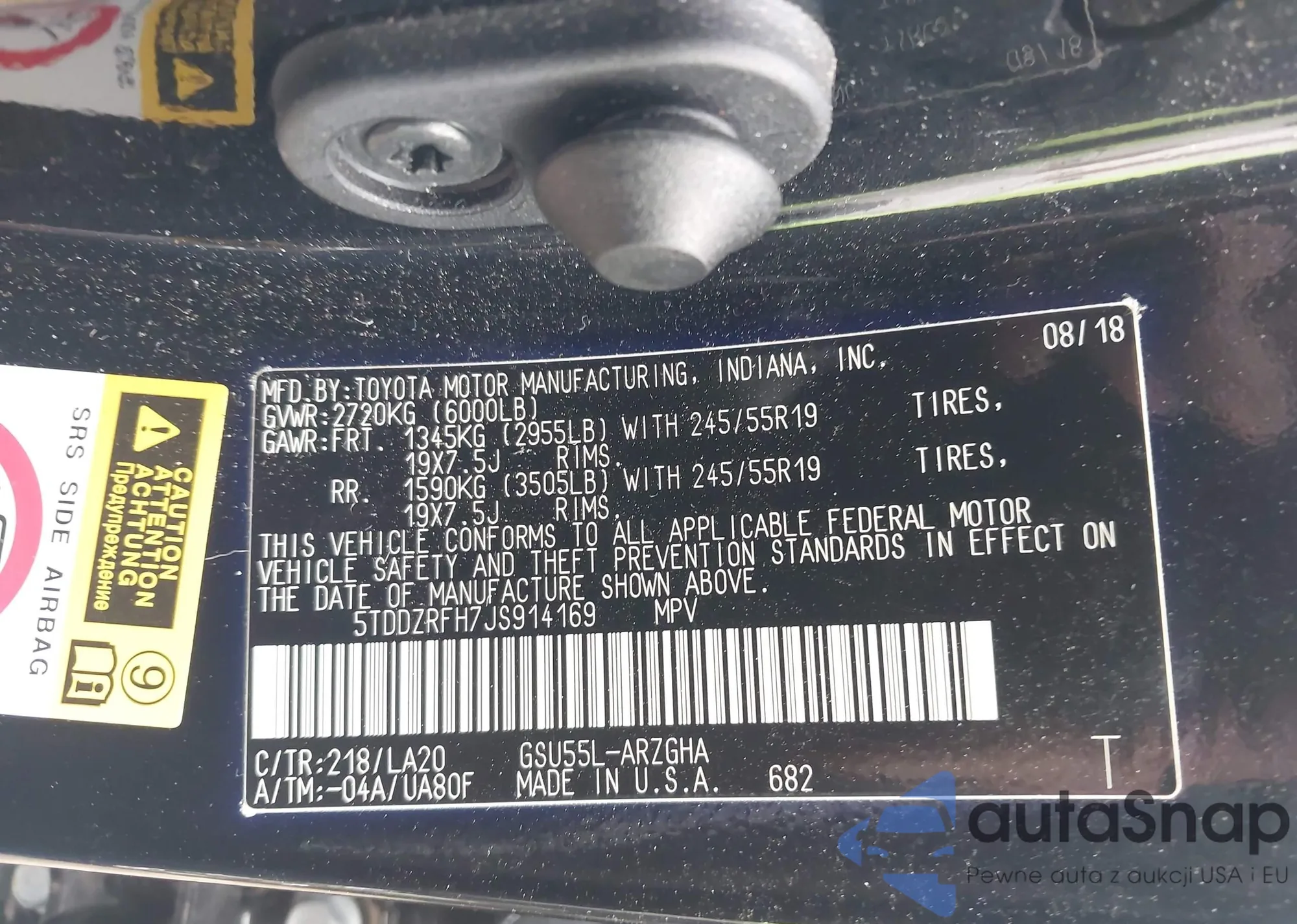 • VIN 5TDDZRFH7JS914169