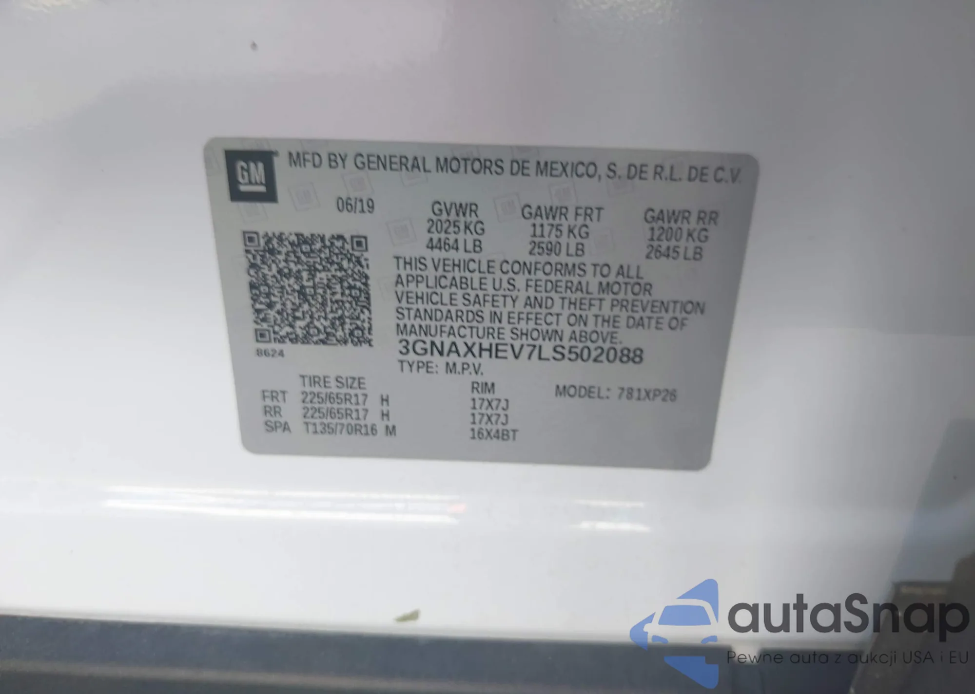 LOT: 43708850 VIN: 2G1105SA1G9194232