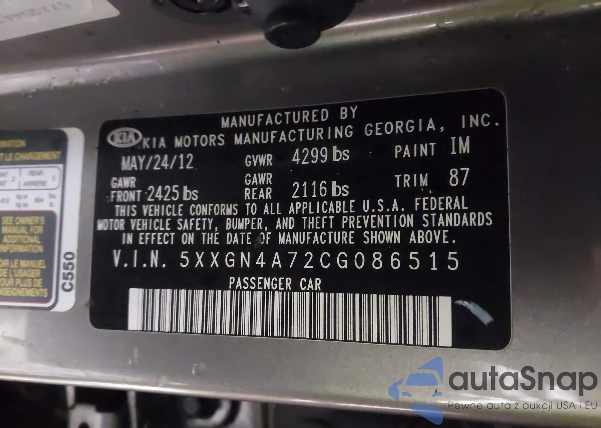 LOT: 43890311 VIN: 5XXGN4A72CG086515